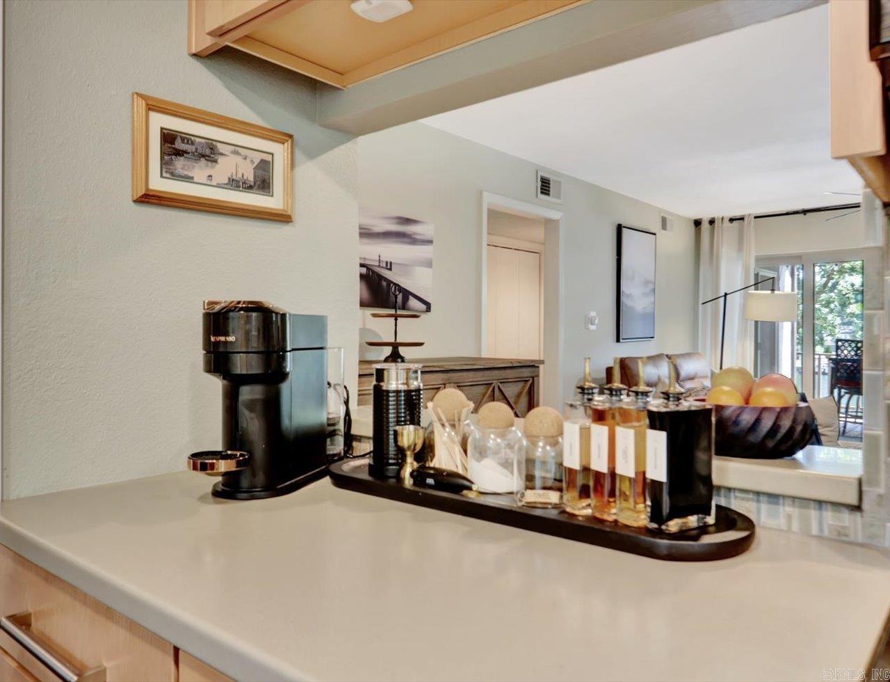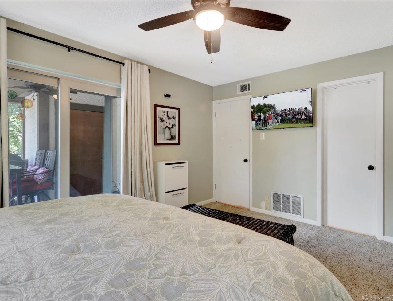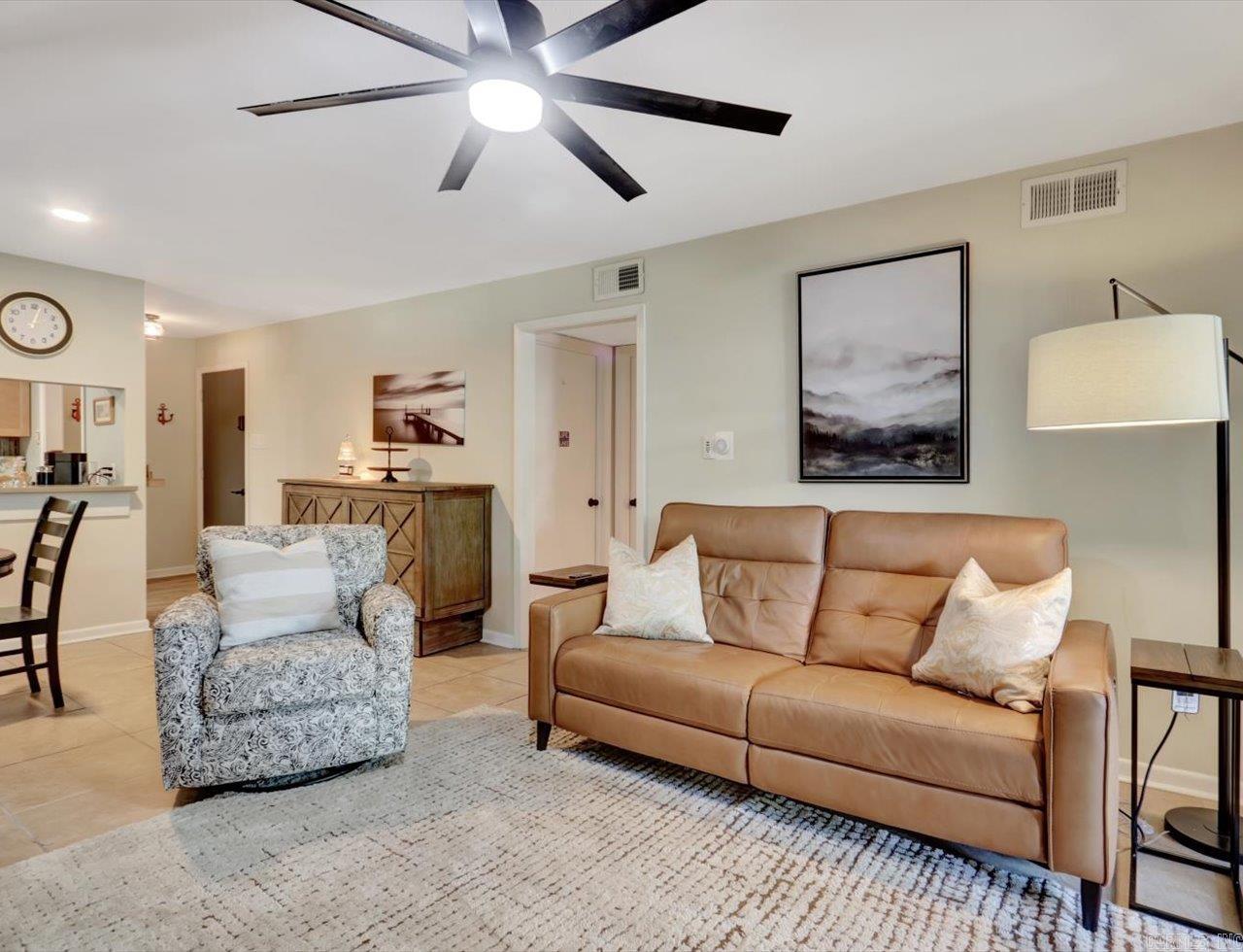 Waterfront Corner Unit on Lake Hamilton Updated 2 bed, 2 bath lakefront condo in a quiet corner of Lake Hamilton. Located on a dead-end street close to shopping, dining, and medical services in central Hot Springs. Open floor plan with balcony access from both the living room and primary bedroom. Kitchen includes newer appliances, tile backsplash, LG HI-MACs countertops, and pass-through to the dining area. Bedrooms are on opposite sides of the unit for added privacy. Recent updates: new HVAC (2023), new appliances, newer windows. Complex improvements include new roof, gutters, dock electrical, and landscaping (2023).