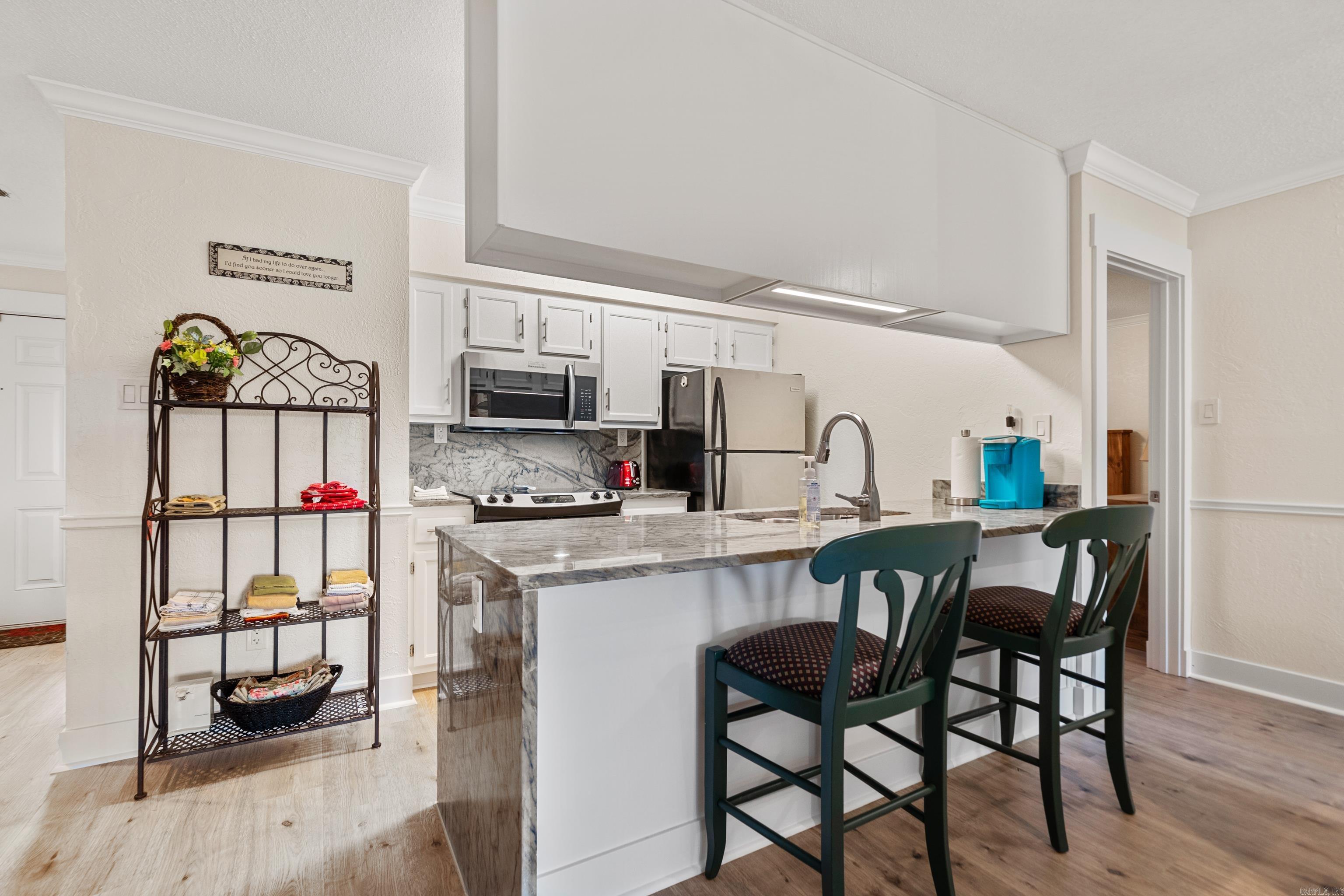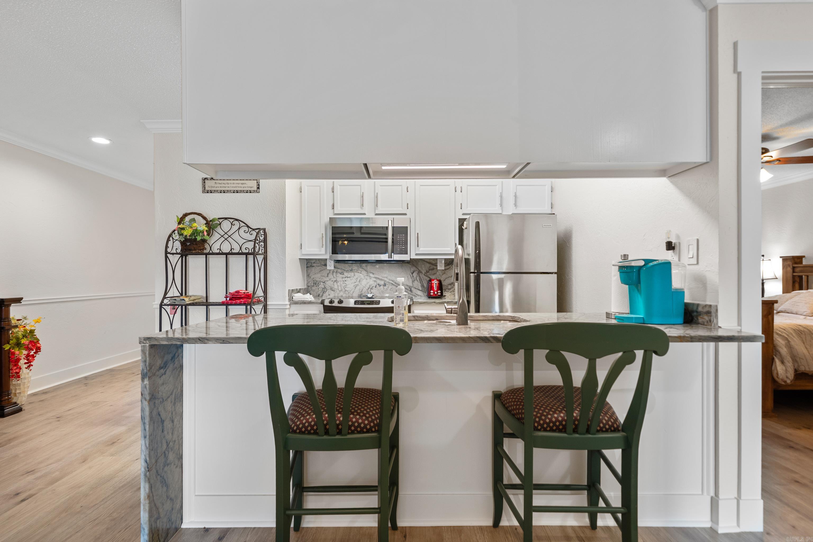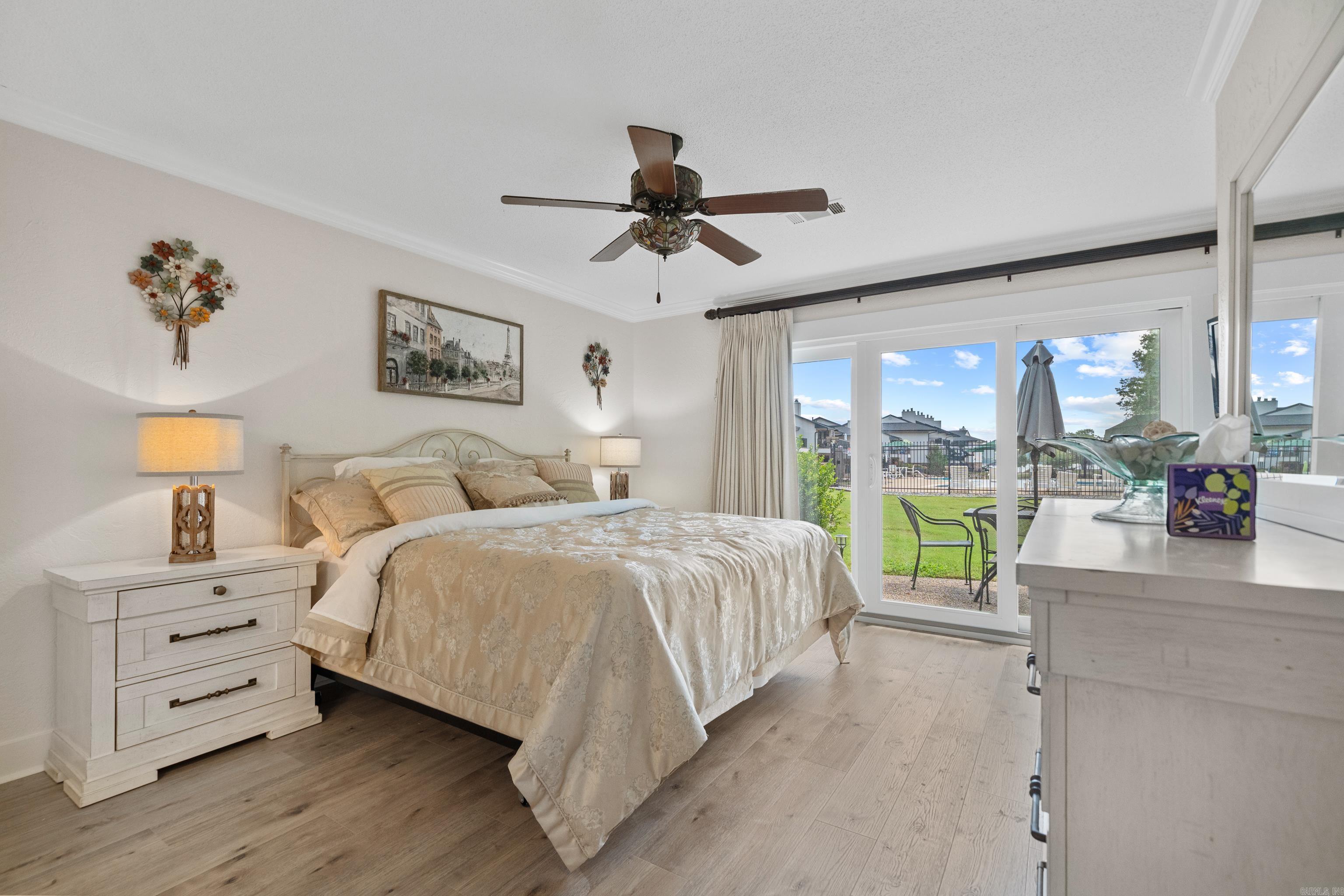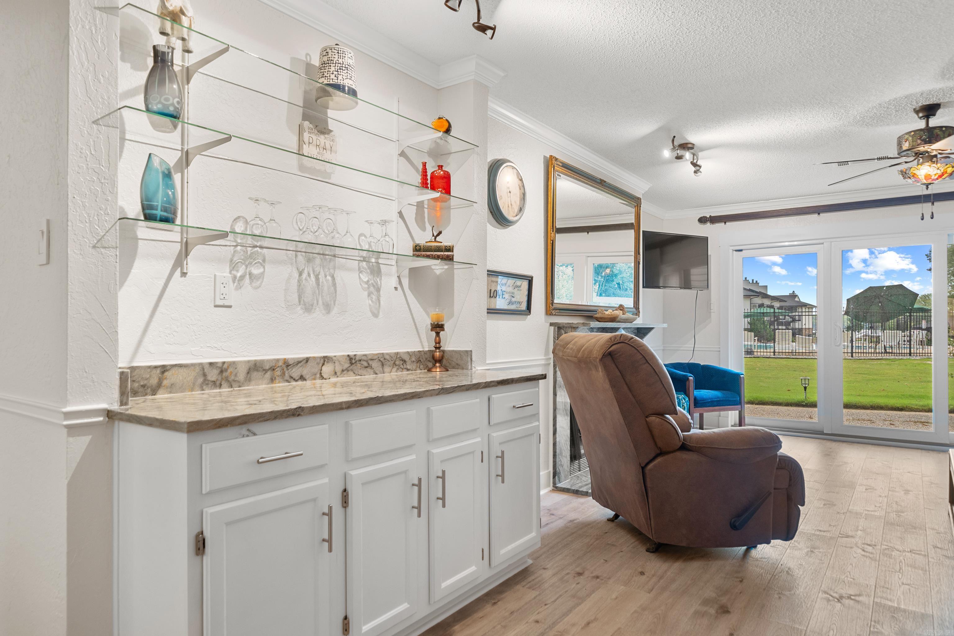 Walk in unit NO steps anywhere. Totally renovated waterfall kitchen granite with same granite in baths. Walk out to pool and new dog run in shaded area. View of lake and amenities on the beachfront property. Neutral colors make this a standout and desirable condo to own. Located next door to Jose’s on Central and short distance to other great dining spots & shopping. Only 7 minutes to Oaklawn Casino and Thoroughbred racing.