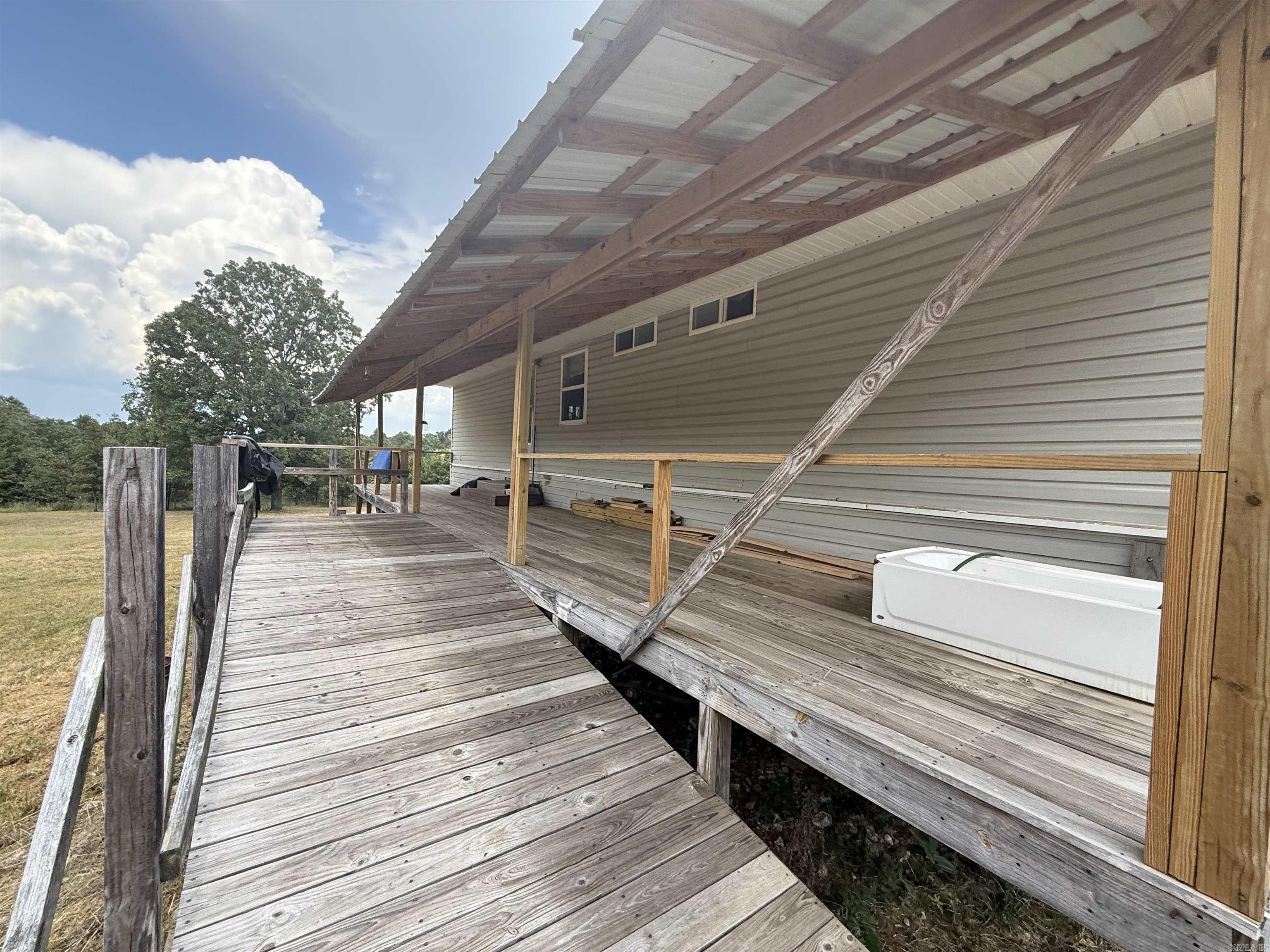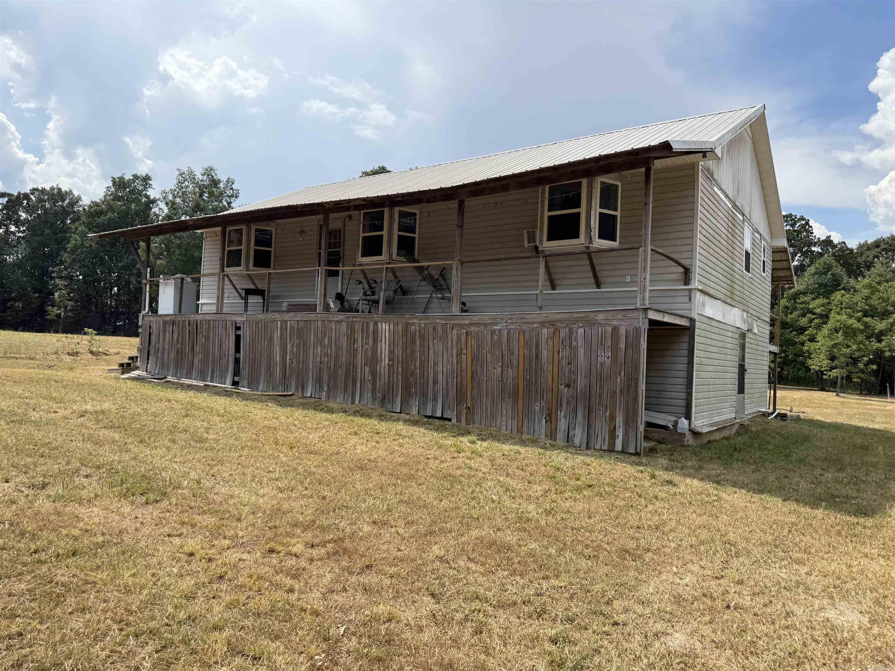 HOBBY FARM This 16-acre property offers a great mix of level to gently rolling land, with approximately 6 acres open and the balance in scattered young trees, making it ideal for a small farm, garden, or livestock. The 1,344 sq. ft. home is fully partitioned into six or more rooms, including three bedrooms, and is ready for finishing work to match your vision. One bedroom is mostly completed with a closet, while the rest of the home needs walls and ceilings finished, giving you the opportunity to finish it out to your liking. A covered front porch spans the entire front of the house, providing a great outdoor space and additional storage beneath. The home is equipped with central heat and air, a functioning bathroom, and space for a second bath. The property also includes a 972 sq. ft. basement, under the main floor, that houses the water heater and pressure tank for easy access. This area provides an abundance of storage and workspace, perfect for tools, equipment, or hobbies. A drilled well and septic are already installed and in working order, saving you time and investment. The home is set toward the back of the acreage, giving you a private and peaceful setting away from th