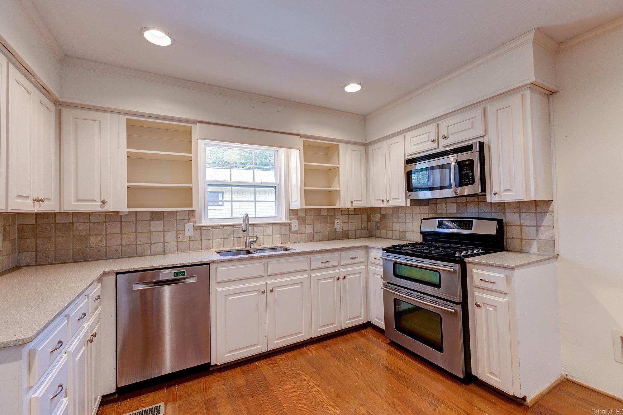 Wonderful mid-town, traditional single level brick home with an excellent floor plan and plenty of space. Open living room and kitchen combo with recessed lighting and wood burning fireplace plus breakfast nook. Formal living room and dining room. Additional living space with half bath and laundry room combo. Large primary suite with updated bathroom. Plus 3 more beds and large hall bath. Backyard with large patio plus storage shed turned into a play house with electricity and heat/air. Sprinkler system. One car carport. Zoned for Forest Park Elementary, Pulaski Heights Middle School and Central High.