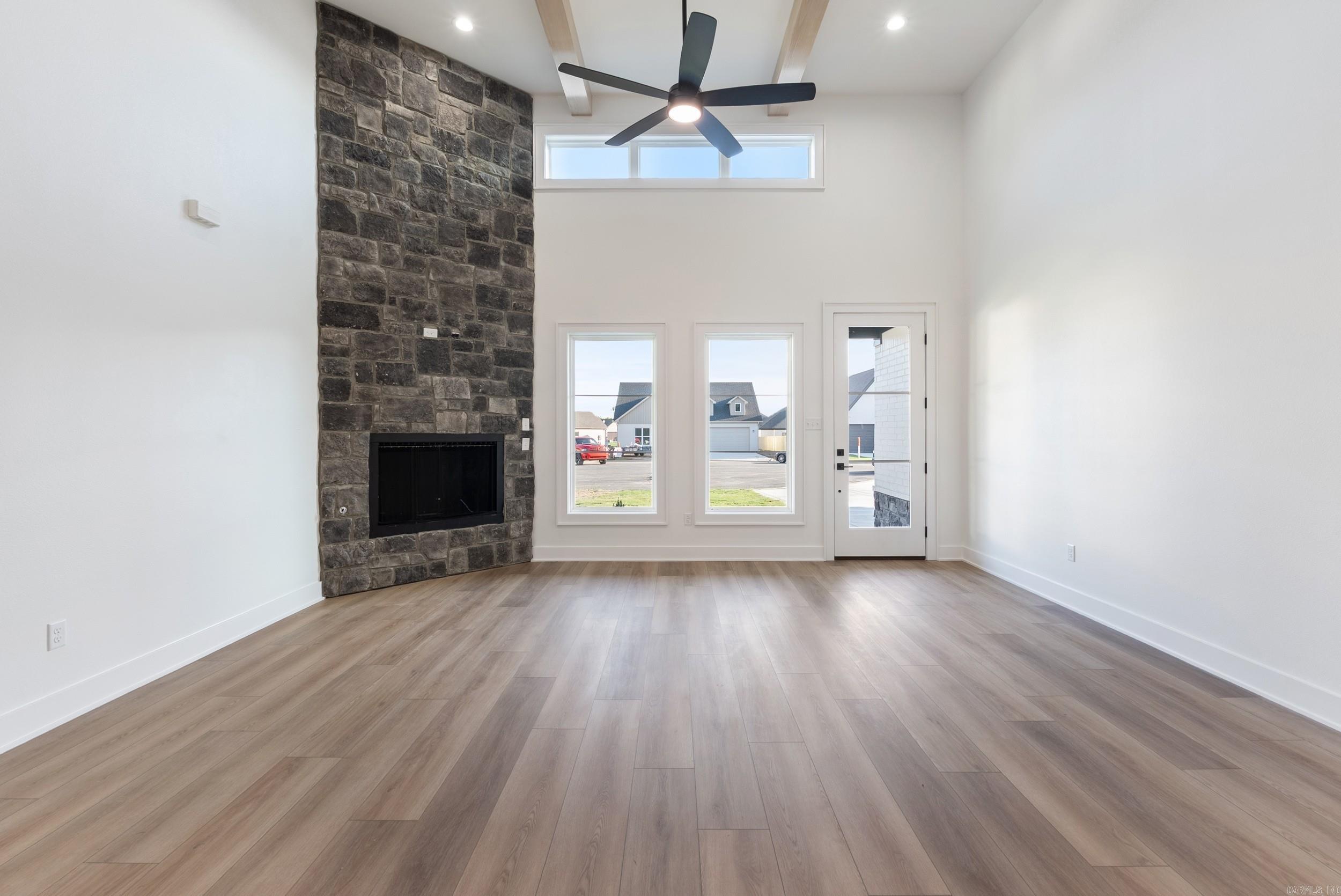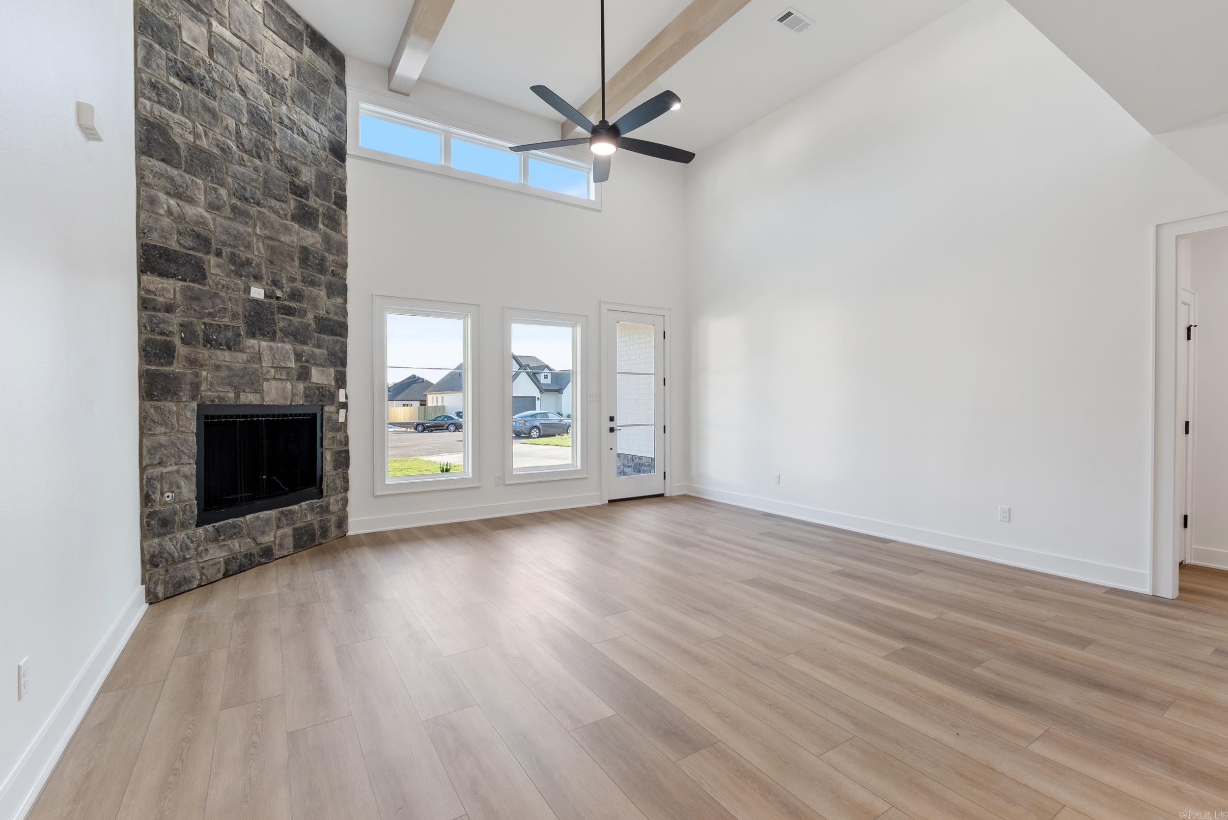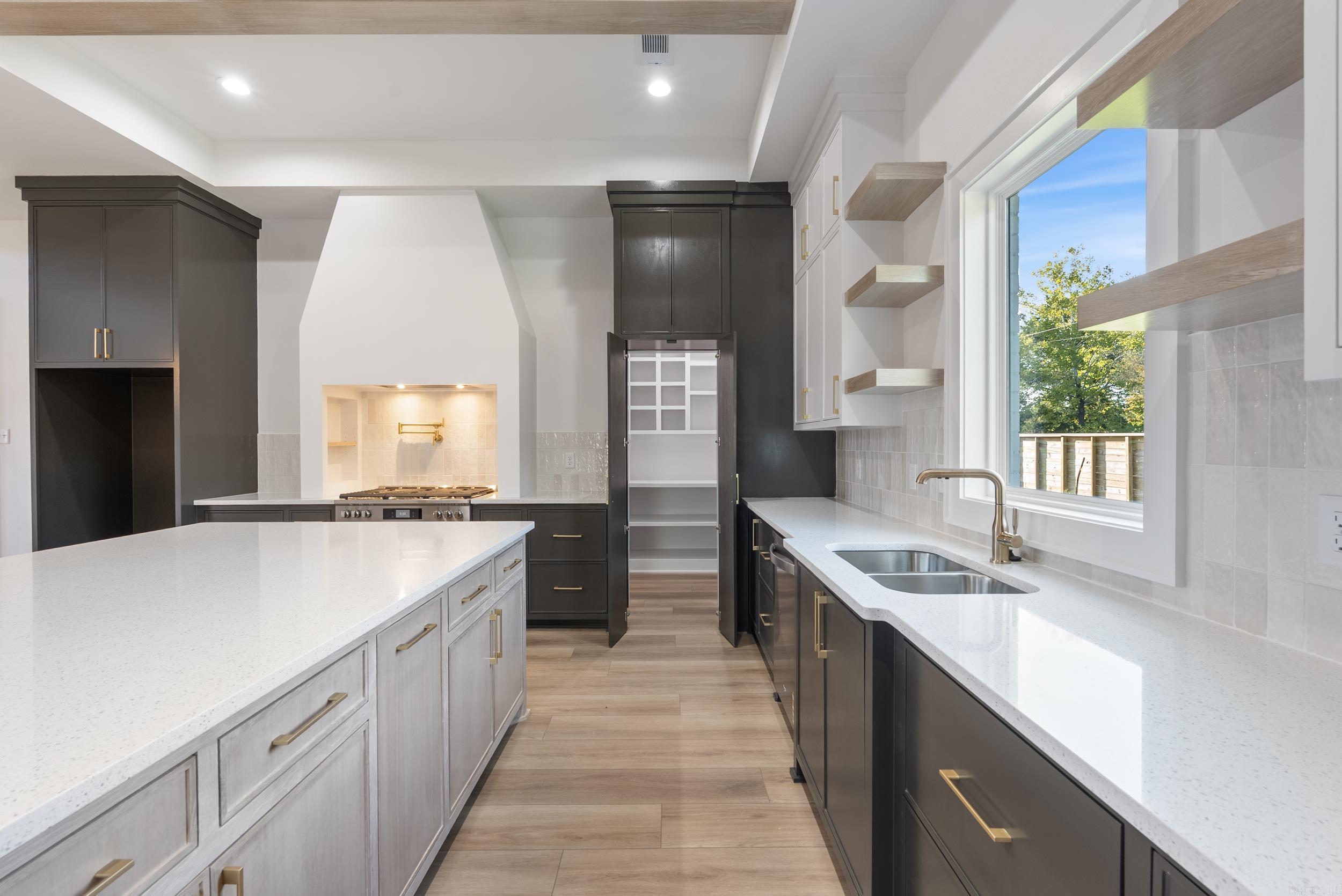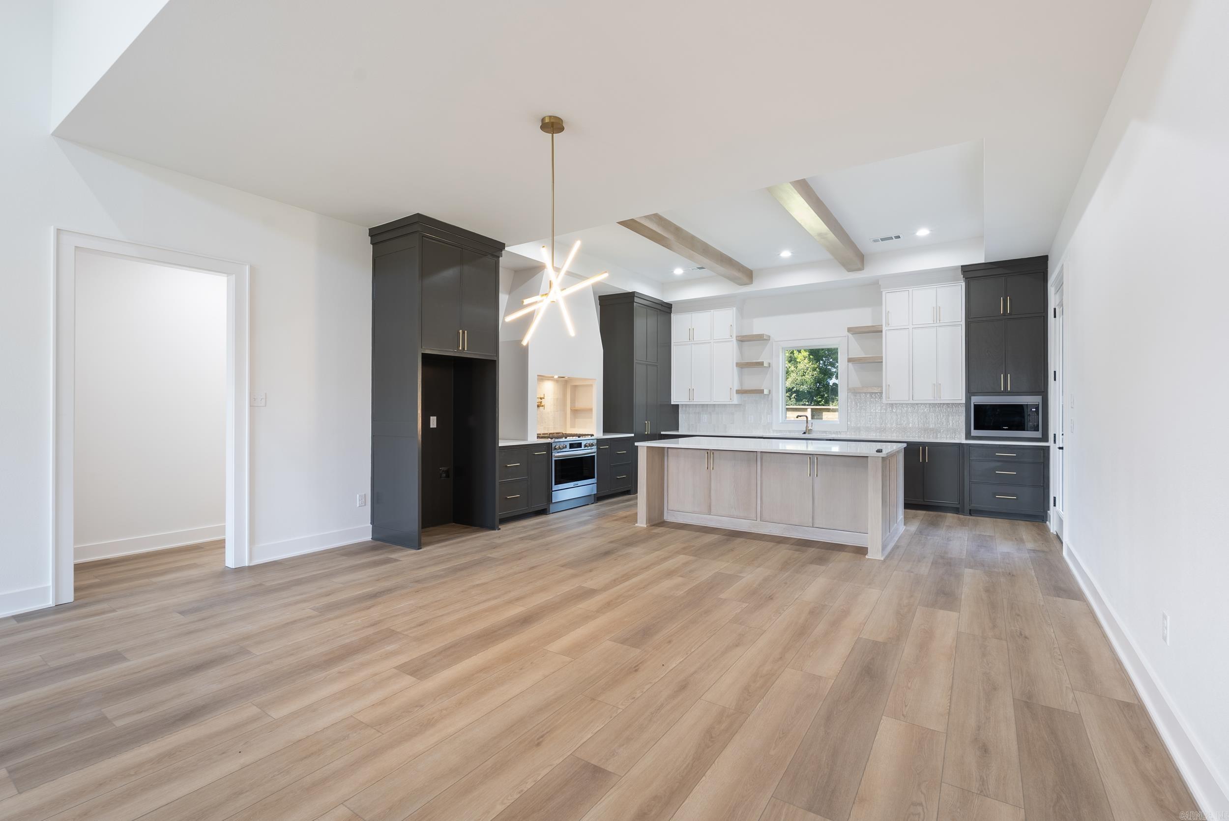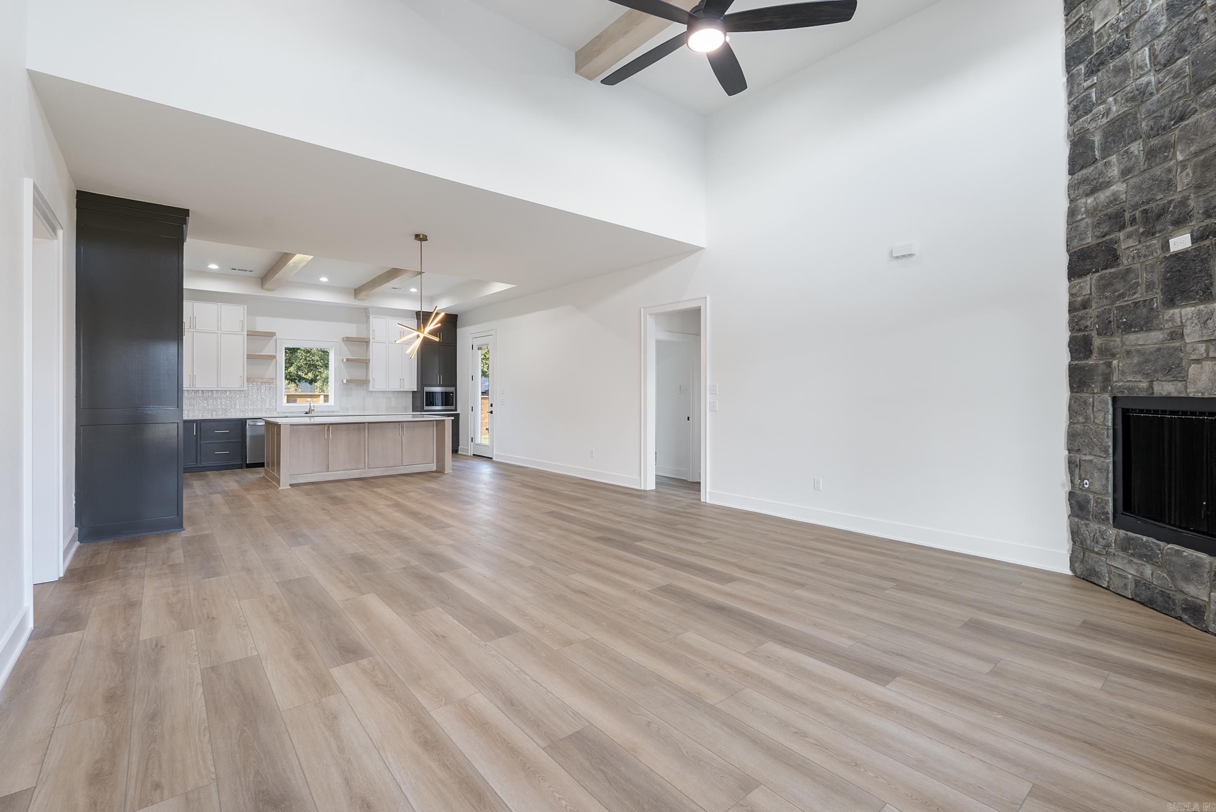 This beautiful new construction home by HDZ STRUCTURES & REMODELING LLC features 3 bedrooms, 2 bathrooms, and a thoughtfully designed layout with high-end finishes throughout. The kitchen is equipped with stainless steel appliances, a gas range, quartz countertops, a convenient pot filler, and a hidden walk-in pantry that adds both style and function. Elegant LVP flooring flows throughout the home, complementing the exquisite tiled showers and carefully crafted details. The vaulted living room ceiling with wood beams, cozy gas fireplace, and plenty of natural light create a warm and inviting atmosphere, while 9-foot ceilings enhance the open feel. Enjoy outdoor living with a covered back patio, perfect for relaxing or entertaining. A laundry room sink adds extra convenience, making this home as practical as it is beautiful. This one is a must-see! Agent see remarks.