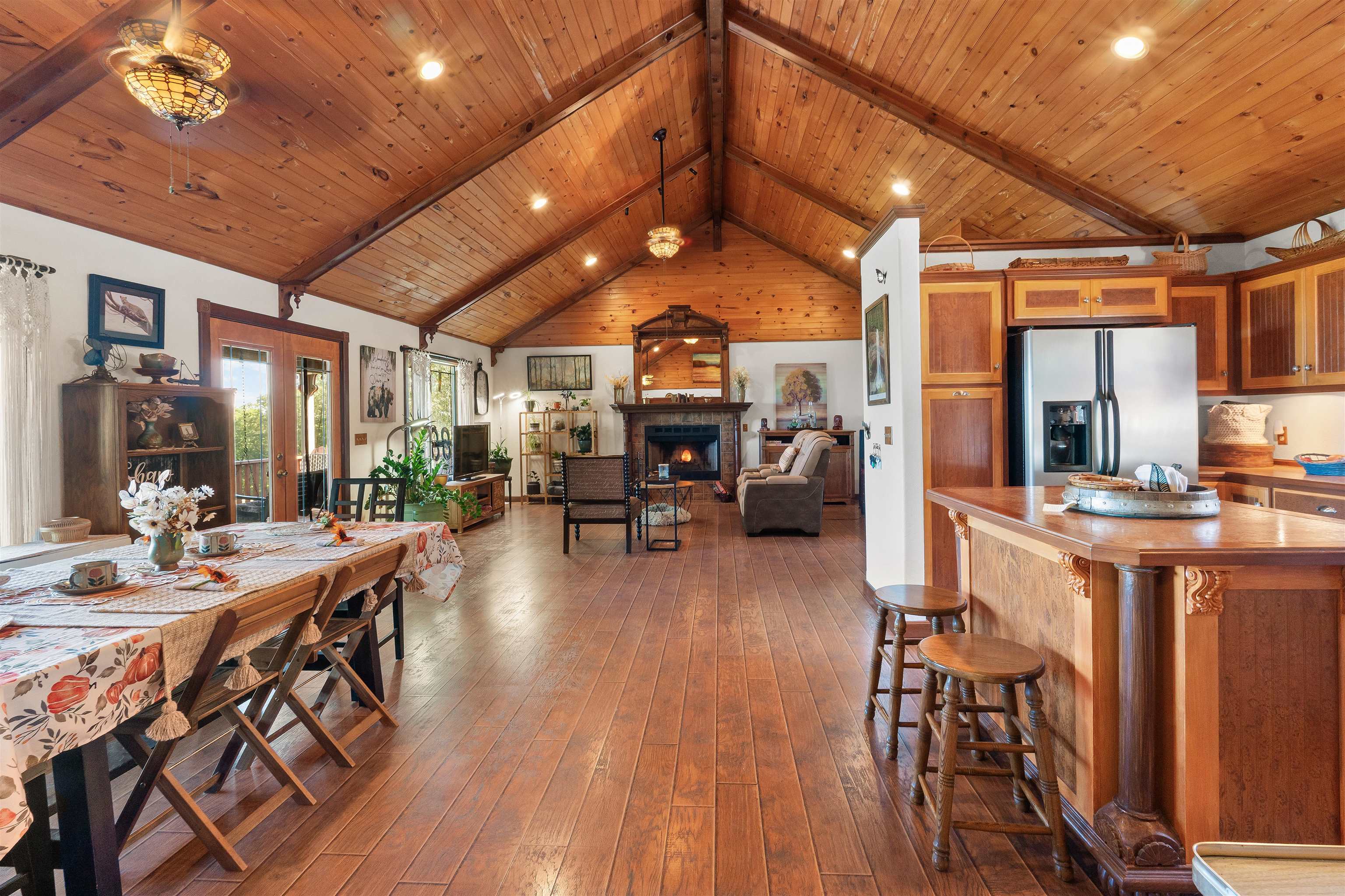 Spacious Home & Guest House with Breathtaking Ozark Mountain Views! The main home welcomes you with an open floor plan, vaulted wood ceilings, and a spacious kitchen that flows into the dining area surrounded by oversized windows. The main-floor master suite includes a full bath and walk-in closet. Downstairs, the walk-out basement offers two additional bedrooms, a full bath, a large shared walk-in closet, utility room, and a safe room. The guest house, currently operating as a nightly rental, is designed for comfort and entertainment with a generous bedroom, expansive living area, full kitchen, full bath, and a second bedroom or office. Above the guest house is a large storage room! Outdoor living is a highlight, featuring a screened-in porch, large deck, and private firepit area. The guest house comes furnished minus a few items! Additional features include a 42x24 carport/barn with fenced in area, tons of landscaping, whole house generator, new roof, new HVAC system, & more! Located near the White River, National Forest, & Downtown Mountain View!