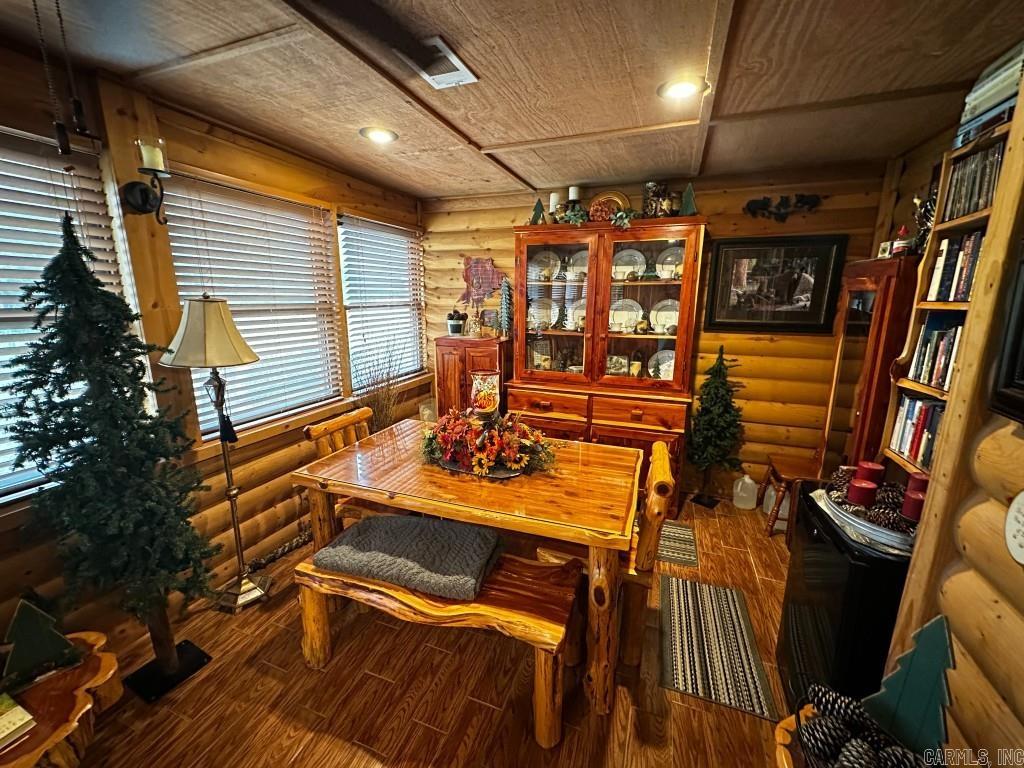 No. 25002 Lodge-style charm near the White River! This 2 bed, 2 bath home offers 1,492 sq ft with an office that could be a 3rd bedroom, spacious kitchen, two dining areas, cozy living room, and a den with a wall of windows. Enjoy outdoor living with a screened-in porch, double post-and-beam carport, 2 storage buildings, fenced enclosure for pets, and beautifully landscaped grounds with gated drive. Home underwent a complete remodel in 2010 with new electrical, plumbing and so much more. Practical features include city water, an old water well, gutters & drain system, storm shelter, and propane. Set back from the highway, the long front lawn provides privacy and reduces road noise. All this less than 5 minutes from the White River and the historic Swinging Bridge at Sylamore Creek! Perfect as a full-time home, second home, or VRBO. Seller will consider a one-year lease back. Don’t miss this rare opportunity to own a versatile property in the heart of the Ozarks. $389,900.00