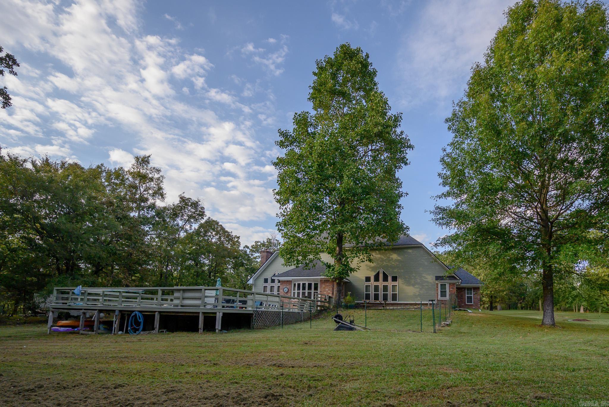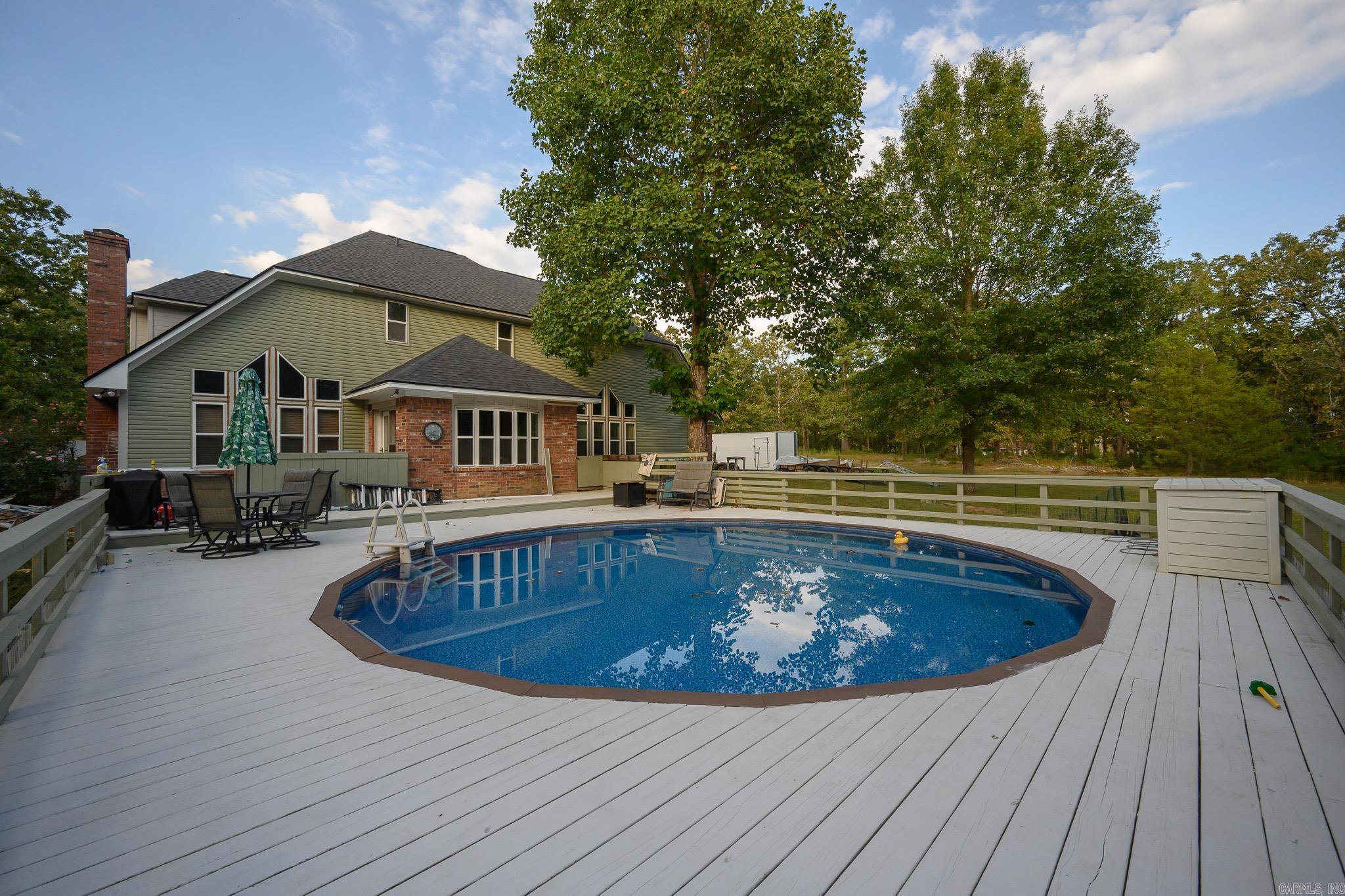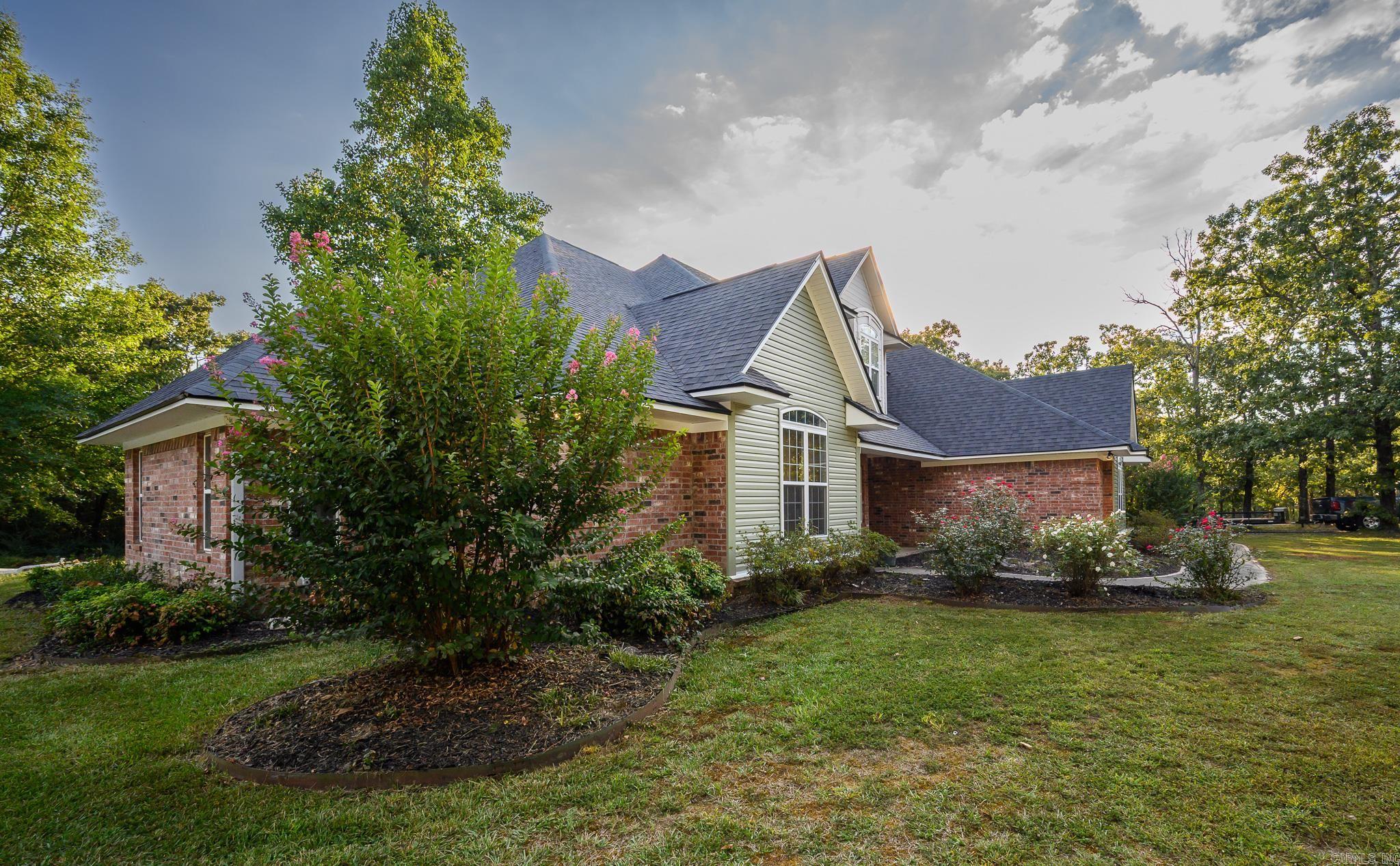 BEAUTIFUL home brimming with features and ideally located in the Mena Lake area! The home includes vaulted ceilings in the living room, open concept kitchen (complete with attractive cabinetry granite countertops, and stainless steel appliances), a lovely breakfast nook overlooking the fenced deck and POOL, & 2nd seating area with a gas fireplace! Primary suite is located on the 1st floor, including a walk in closet, double sinks in the bathroom, separate shower and jacuzzi tub! The 1st floor also includes a formal dining and separate office. The lofted 2nd floor has 3 spacious bedrooms, (two with a connecting Jack and Jill bathroom) and the other with its own en suite bathroom and built in desk & storage! There is ample additional storage throughout the home, large pantry, and a laundry room with a sink, countertops and storage cabinetry! Appliances new in the past 2 years including water heaters and AC units! New luxury vinyl on the main floor, & Brand New exterior siding and roof! Complete with 2 car garage, additional 1 car garage that could be used as a shop AND a FEMA approved storm shelter! All this sits on over 2 acres! A private oasis just minutes from town!