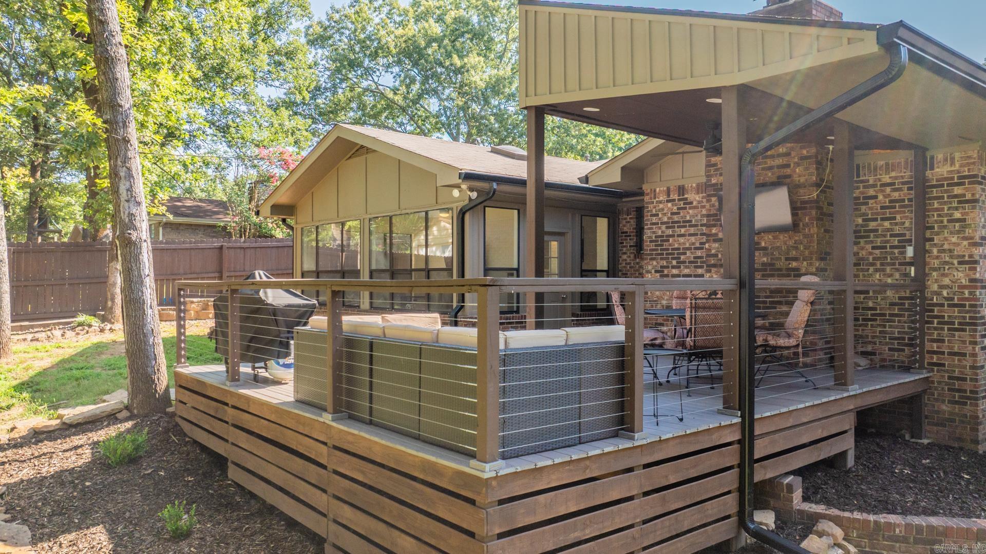 Buyer Financing Fell Thru!!! Prepare to be impressed the moment you walk in! This beautifully updated home is filled with stunning upgrades and thoughtful details. It offers 3 bedrooms, 2 baths, a spacious living room with fireplace, an office, formal dining room, eat-in kitchen, laundry room, and a bright sunroom. The kitchen shines with new granite countertops, freshly painted cabinets, stylish backsplash and hardware, plus a new dishwasher and disposal. The sunroom—just off the kitchen—features walls of windows and opens onto an updated deck, perfect for relaxing or entertaining. Both bathrooms have been completely remodeled, and the home also features new flooring, paint, and lighting throughout. Even the electrical service has been upgraded. Outside, you’ll find charming updates as well: beautifully trimmed porch columns, fresh exterior paint, a covered deck addition, and thoughtfully designed landscaping with lush plants and oversized river rock. HVAC replaced 2017, water heater 2020, fully fenced level yard, a two car garage and great neighborhood are a few extras this home offers. See agent remarks regarding dog.