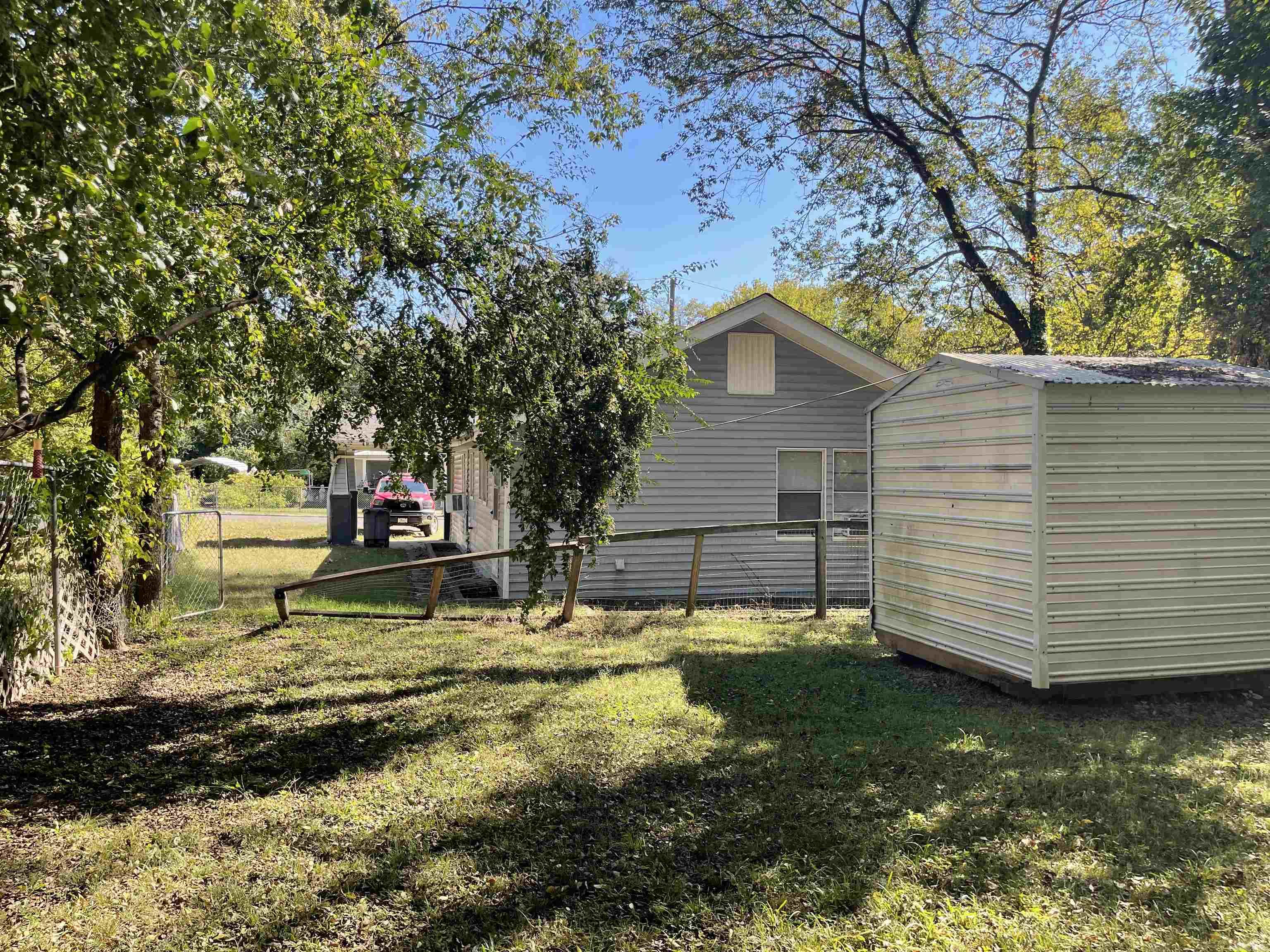 Great home in convenient location to shopping. This 3 bedroom home still has the original hardwood floors through most of the house. Kitchen, bath and laundry room have vinyl floors (hardwood may be present underneath). Large kitchen with Original Built-in's and Hardwood doors, adds to that Vintage feel. Back bedroom is large. Walk-in laundry room. Nice back yard, partially fenced. One car Carport and nice front porch.