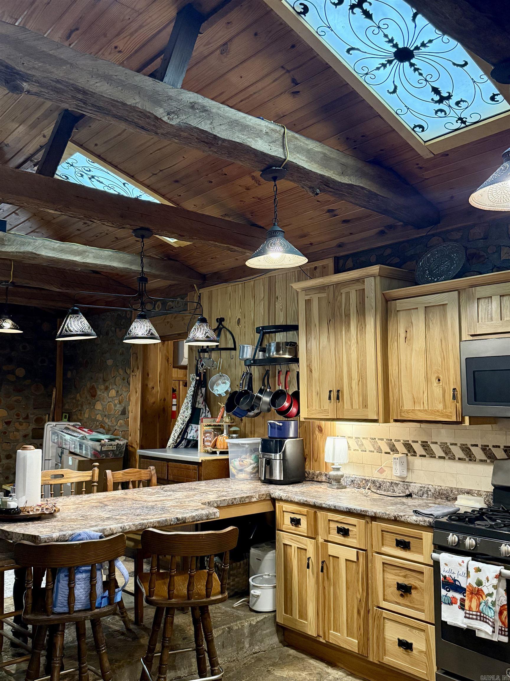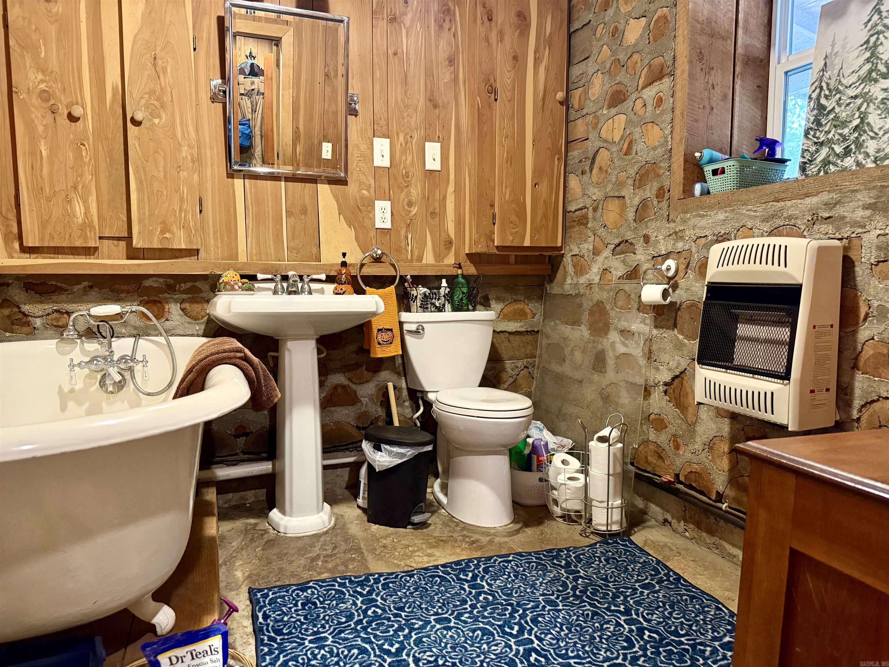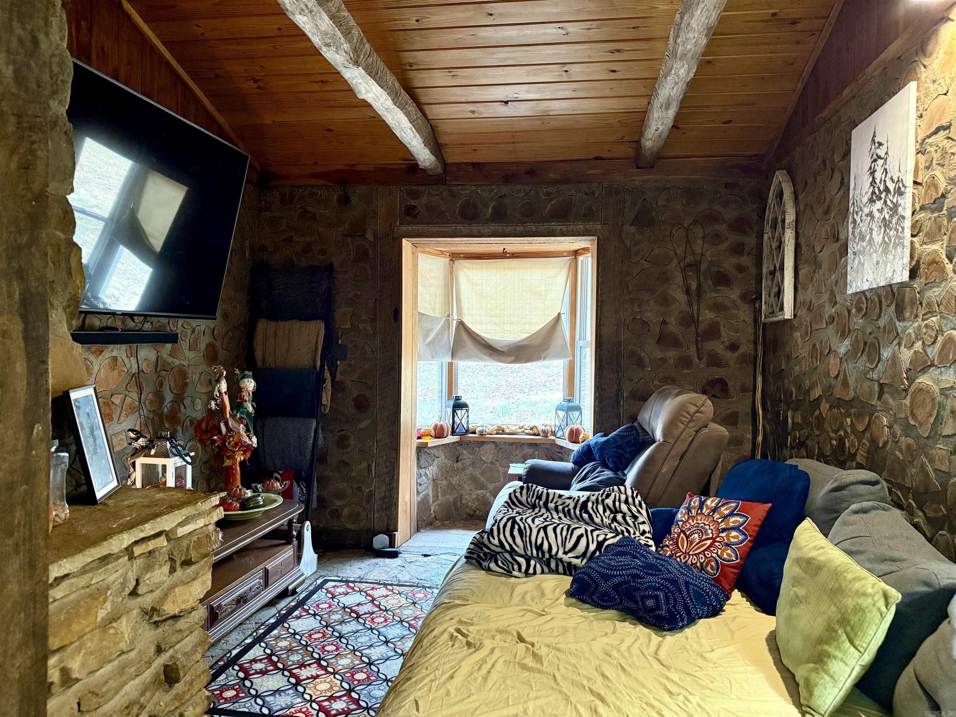 Escape to your own rustic retreat on 20 beautiful acres! This handcrafted Cedar Cordwood-style home exudes character with 16'' exterior walls and walkways made from rocks harvested right off the land. Inside, you'll find 2-3 bedrooms, 2 baths, an Amish-built kitchen, rock and laminate flooring, wood heat stove, and Senville mini-split units (2024). Outside offers space to breathe with a -acre pond, storm/root/wine cellar, 20x30 wired shop with deck, 18x20 guest house with kitchenette, storage building, and more. Roof replaced 2019/2020, propane tank leased and filled Aug 2025, and Clay Co Connect fiber internet available. Refrigerator stays, and home will be professionally cleaned after move-out. A true blend of craftsmanship, comfort, and country serenity!