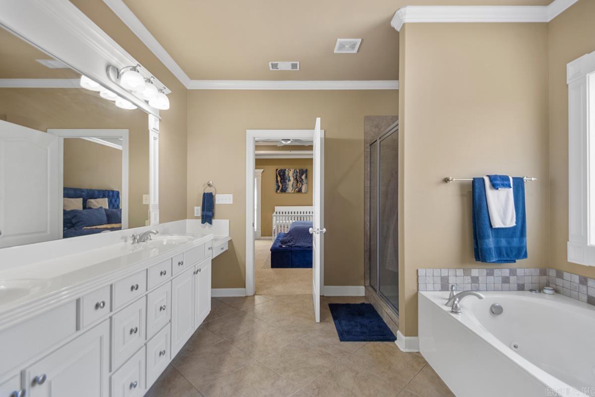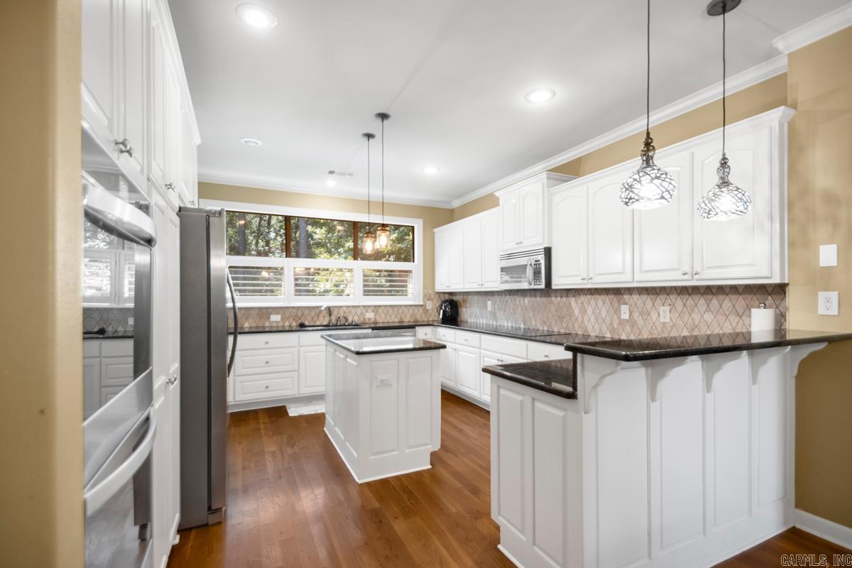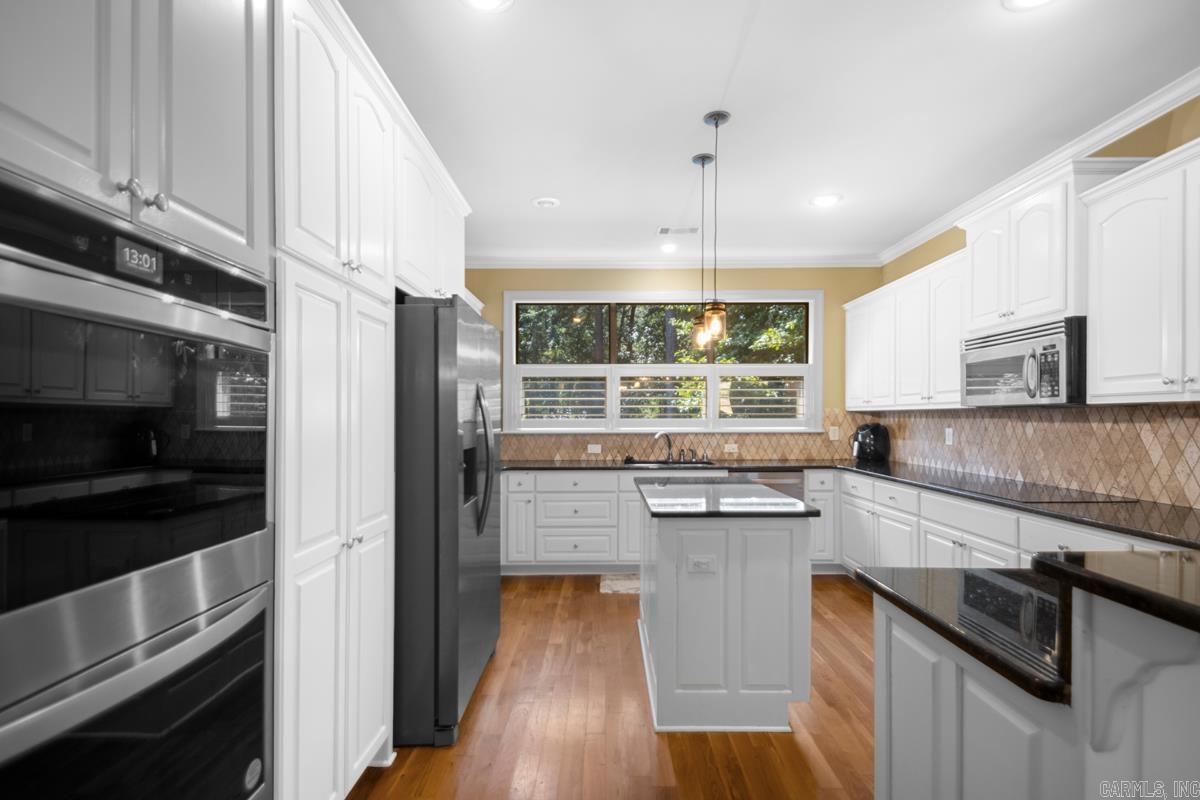 Welcome home to the highly sought-after Chenal Valley Brontë Court subdivision! This stunning five-bedroom, three-bath residence boasts an impressive 3,568 square feet and is beautifully maintained, sitting on one of the largest lots in the neighborhood. As you step inside, you'll be greeted by soaring ceilings and an open-concept layout that creates a warm and inviting atmosphere. The living area features a cozy wood-burning fireplace, perfect for gatherings, while large windows fill the space with tons of natural light. The gourmet kitchen is a chef's delight, showcasing granite countertops and a surface electric cooktop, making meal preparation a breeze. On the main level, you will find three well-appointed bedrooms, including a spacious primary suite that serves as your personal retreat. The primary suite is complete with a spa-like bathroom and an oversized walk-in closet, offering both luxury and convenience. The lower level of the home offers two additional rooms, full bath and a large bonus room, providing versatile space that can be tailored to your needs—ideal for a home office, playroom, or entertainment area. Located near highly rated schools, dining, and shopping.