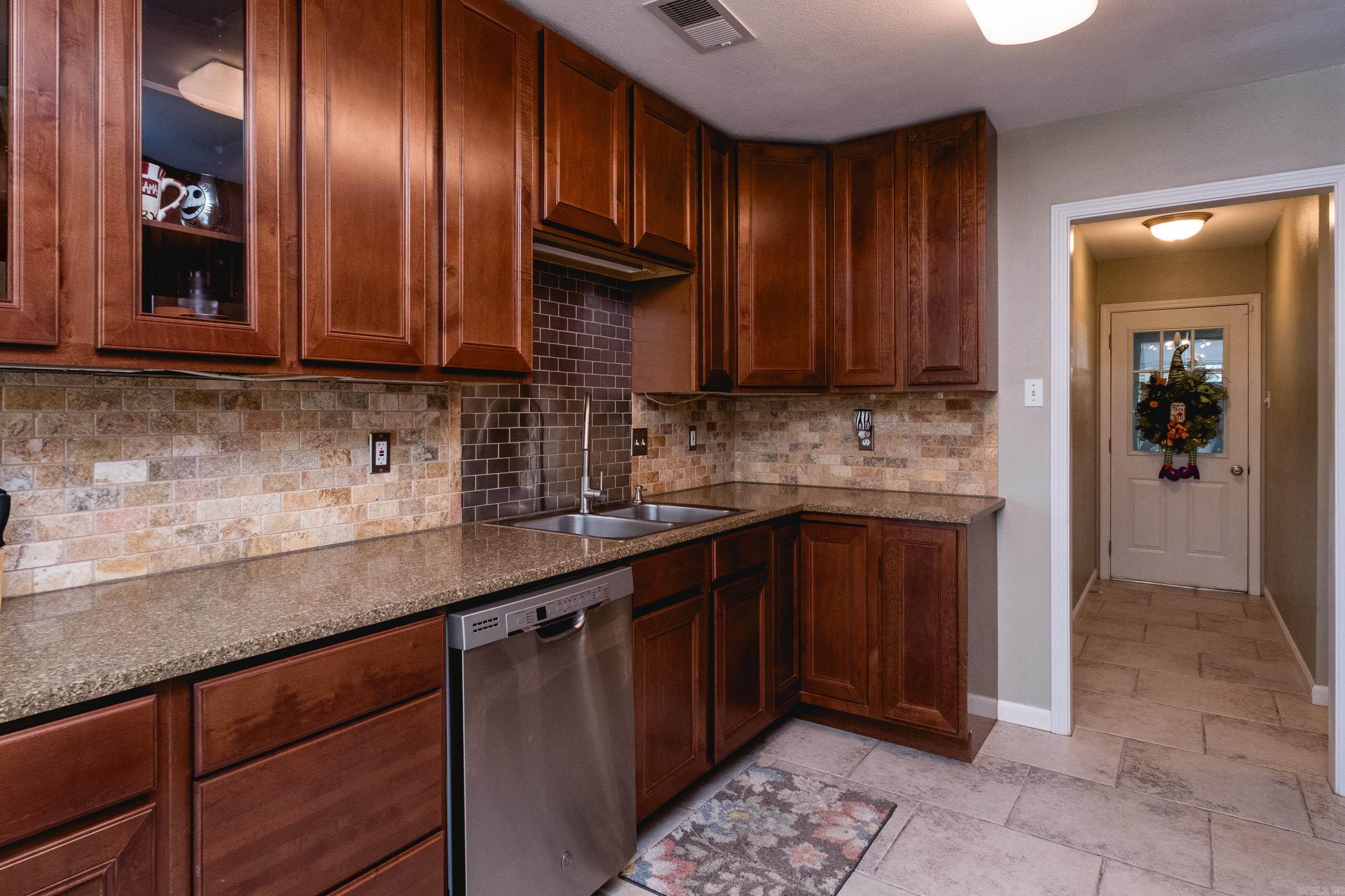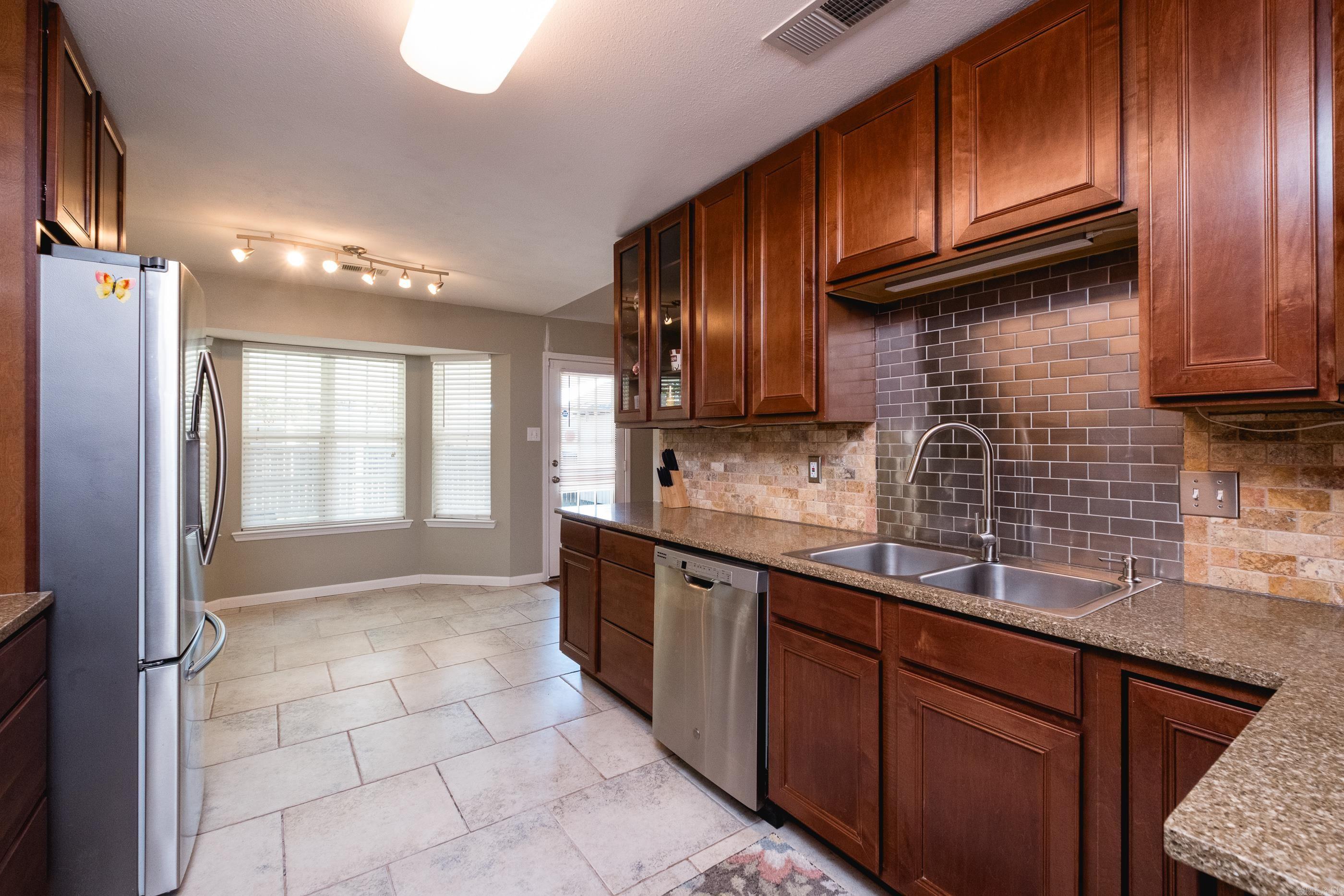 Welcome to this beautifully maintained 3-bed, 2-bath home in desirable Austin Lakes. You’ll love the inviting open layout and split floorplan, designed for both comfort and privacy. The spacious living area flows effortlessly into the eat-in kitchen, which features slab granite countertops, and plenty of cabinetry for storage. The primary suite offers a relaxing retreat with a tray ceiling, dual sinks, and a large walk-in closet. A separate laundry room adds everyday convenience, and the two-car garage provides ample space for vehicles and storage. Step outside to enjoy your fenced backyard with 8x12 storage building, perfect for pets, play, or entertaining guests. With its ideal location, modern finishes, and peaceful neighborhood charm, this home delivers everything you’ve been looking for in Austin Lakes living!