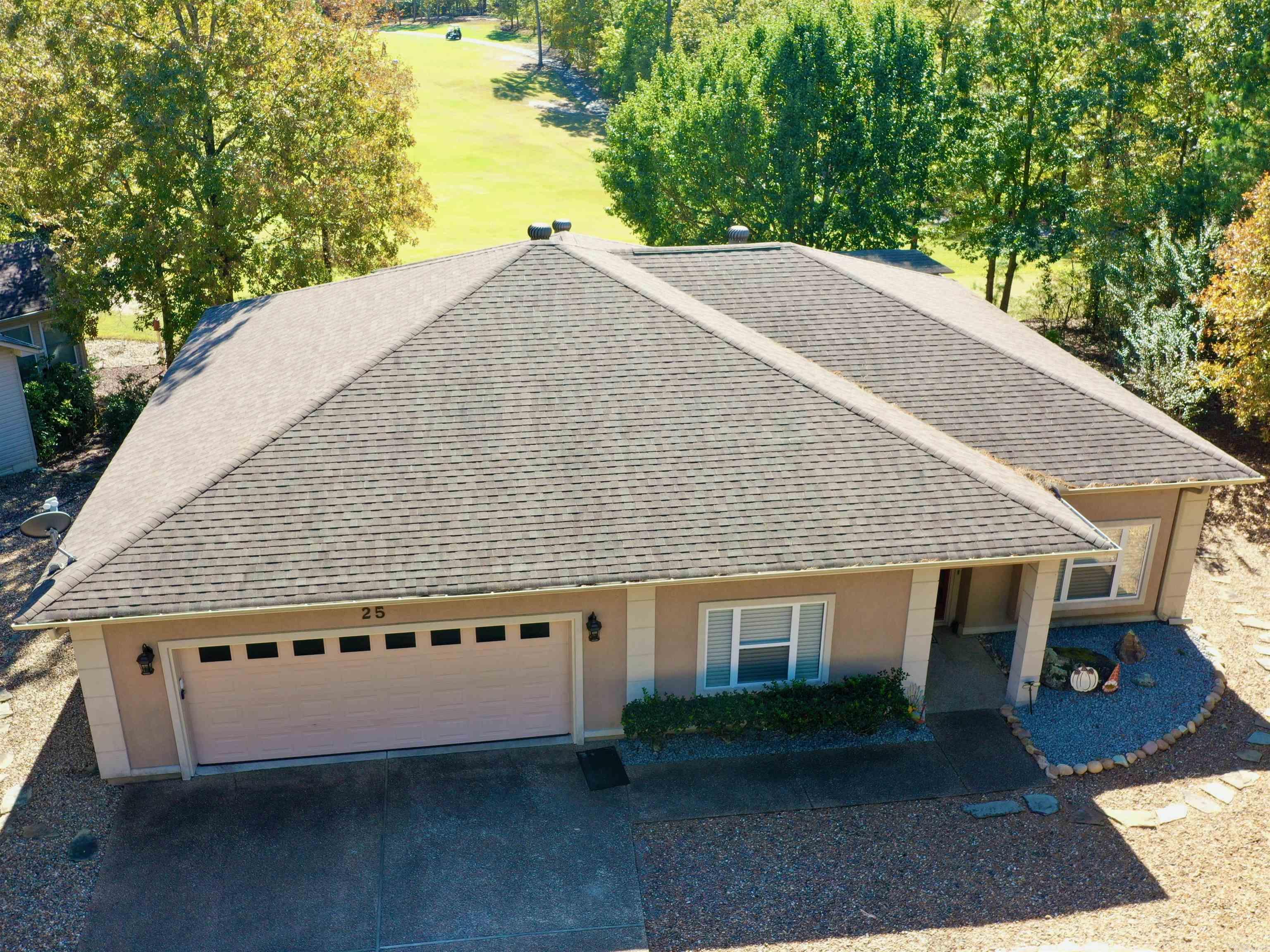 Picture yourself relaxing on the covered patio, enjoying your favorite snack and the peaceful golf course view — a beautifully maintained “lawn” you’ll never have to mow! This well-cared-for and recently updated home offers easy living with a split-bedroom floor plan, level driveway, and yard that gently slopes to the 14th tee of Coronado Golf Course (no cart path behind the home!). This popular floor plan features three bedrooms or could be a two bedroom home with an office or formal living room. Major updates are already done — roof replaced in 2016, HVAC in 2021. Since 2023 all appliances have been replaced, new carpet in bedrooms, LVP flooring installed in den and dinning area, new cabinets and granite countertops installed in kitchen . A brand new fireplace has been installed. The low-maintenance yard features a RainBird sprinkler system to keep flowers and shrubs looking great year-round. Move in and start enjoying the relaxing Hot Springs Village lifestyle! New HSV homeowners pay a one time $2000 buy-in fee to the POA. Washer & dryer convey with property.