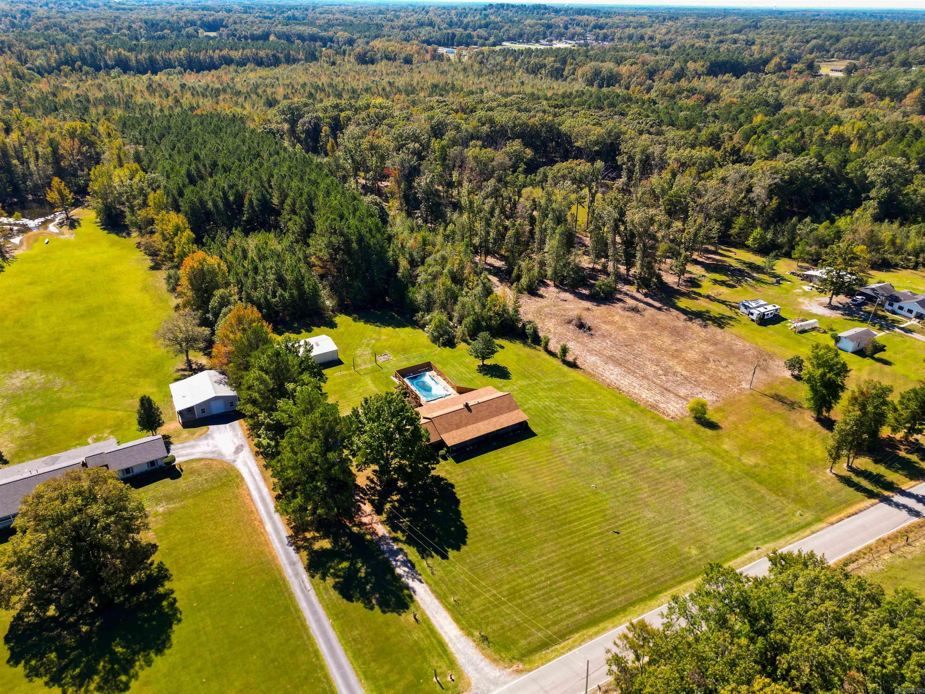 This beautiful, 3 bedroom, 2.5 bath home consists of 7.76 acres in a prime location. The open concept kitchen, dining, and living areas create a warm and inviting space highlighted by a wood-burning fire place and mantel perfect for holiday decorations. Enjoy spacious bedrooms and bathrooms, a brand new roof in 2023 for peace of mind and plenty of natural light. Outside, relax by the pool on a hot summer day or take advantage of the 40x30 shop, plumbed and wired for all your projects or storage needs.