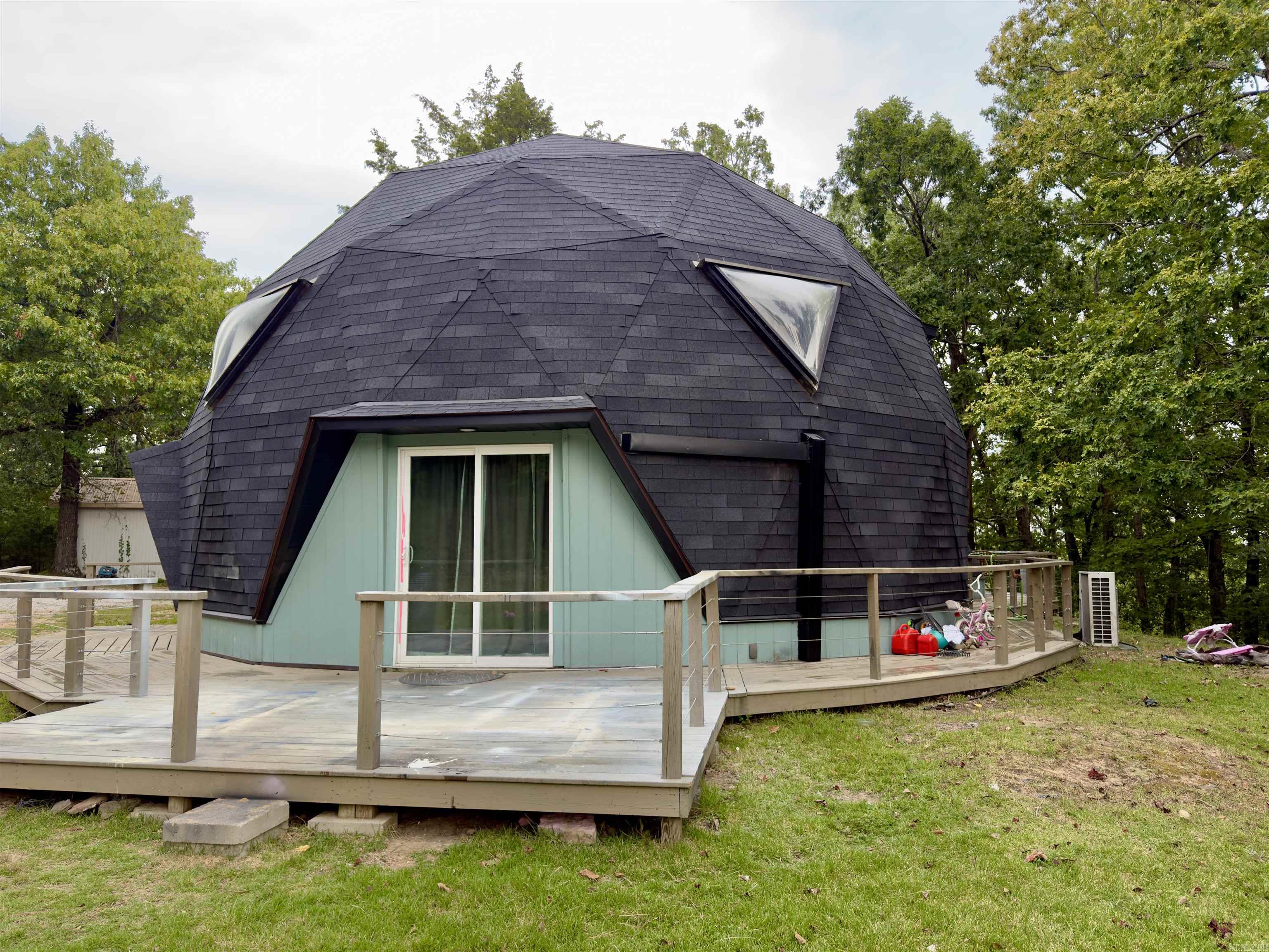 Beautifully remodeled in 2022/2023 1 bedroom 1 bath with loft Geodesic (Dome) style home on 28.59 wooded acres m/l. The home features quartz countertops, new sheetrock, new wiring, new LVP flooring, custom spiral staircase, new roof, (all in 2022/2023) and a 14x25 ft garage. Unique home could serve multiple uses such as a permanent home, vacation rental or hunting cabin. Plenty of other building spots to develop.