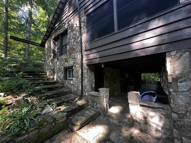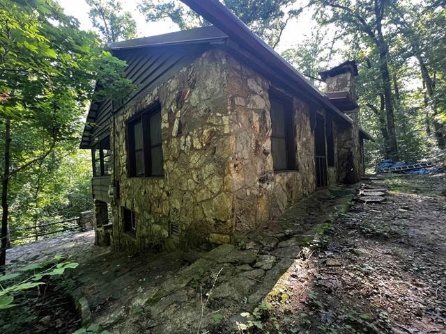 Unique 1937 cabin located in the Ozark Mountains on Historic Wahpeton Hill high above and just a short distance to Spring River, Loberg park, the river trails, the Hardy beach river access for swimming, kayaking, floating, world class fishing and downtown Old Hardy! 2 bed, 1.5 bath on 4.34 surveyed acres+/- in the depth of the woods yet minutes away from town amenities. Beautiful rock work all around the home, sit and relax outside while enjoying the fruits of nature. Main level includes living area, 2 bedrooms, large screened in porch, and a warming fireplace. Downstairs includes kitchen, full bath and half bath. Check out the history of this one of a kind property. Includes new roof 2022, new windows 2024, new insulation 2024.
