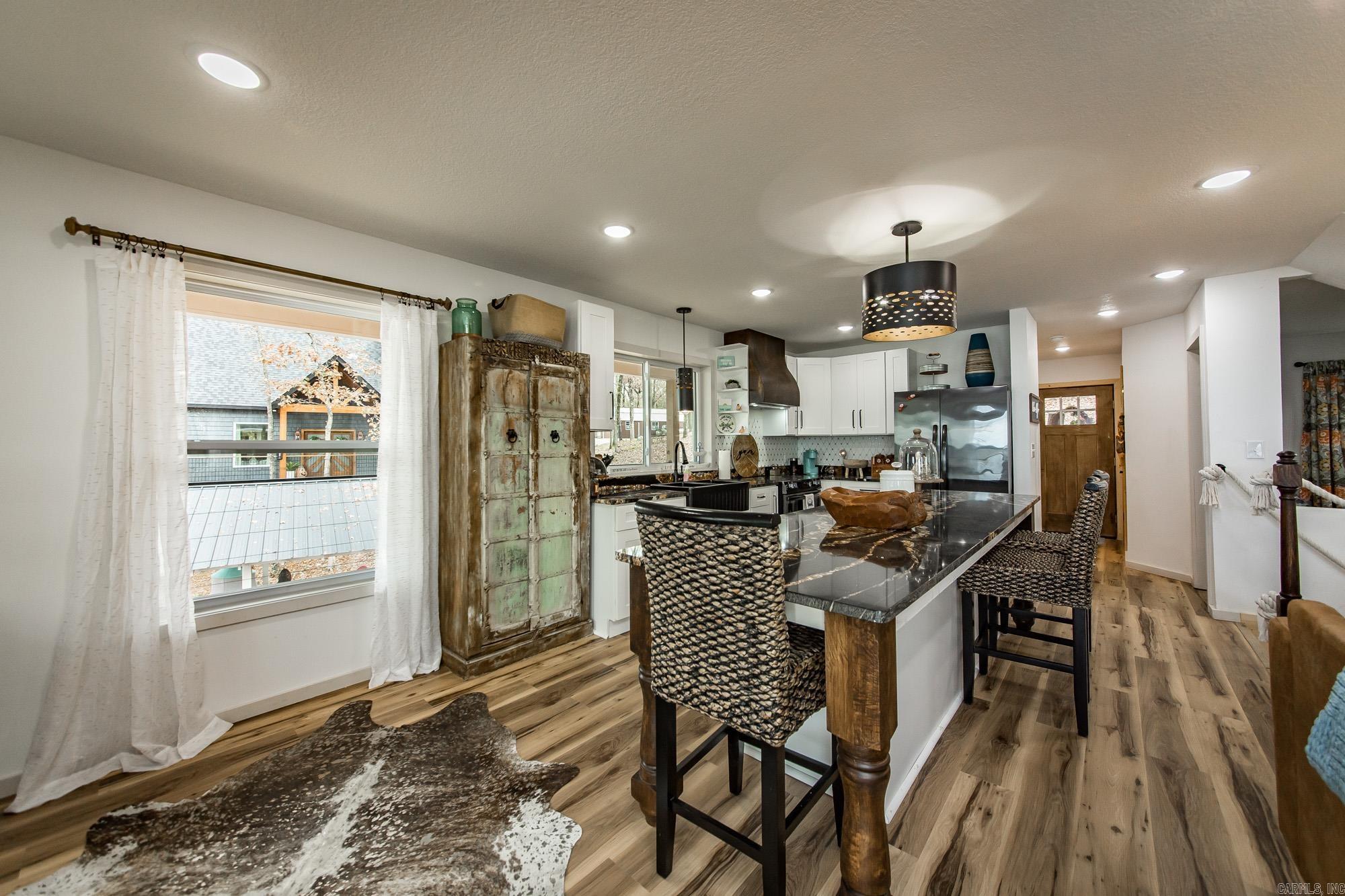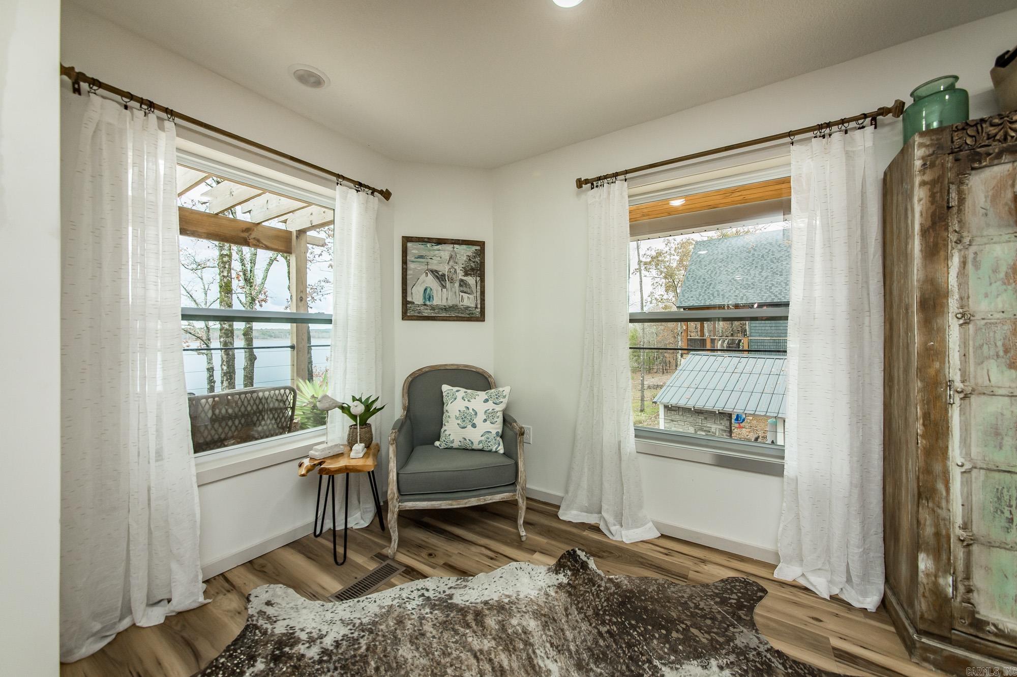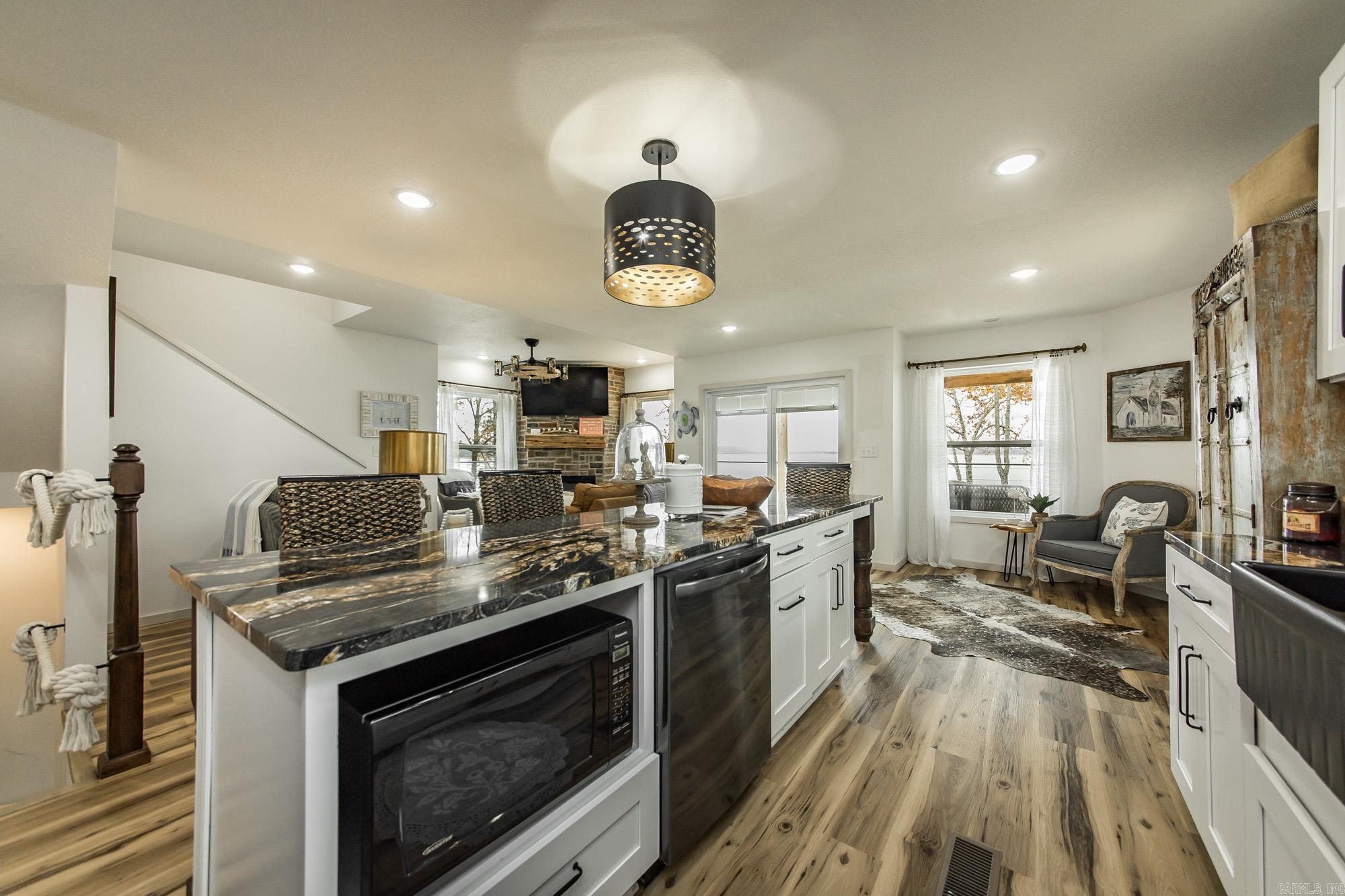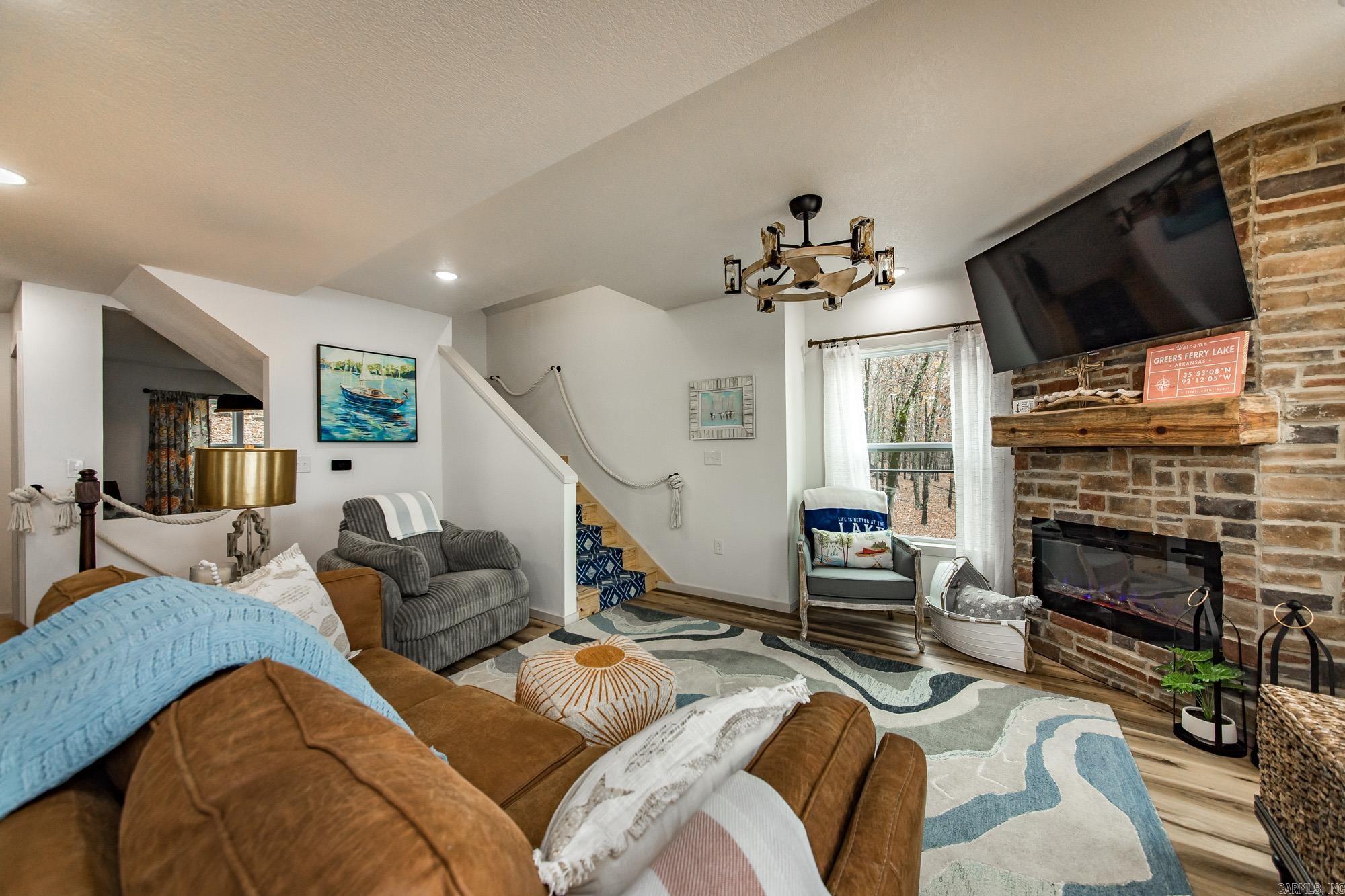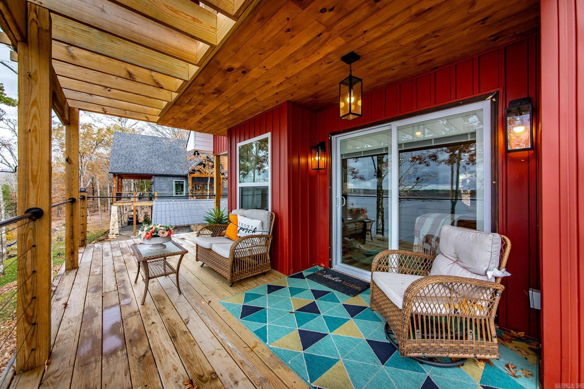 This incredible LAKE HOME, just a year old, offers phenomenal sunset views of Goat & Scout Island on Greers Ferry Lake, making it the perfect dream house. On top of this location & view, it comes COMPLETELY turnkey or ready for a short-term rental so just bring your toothbrush. The photos & video tell the story, but in case you are wondering; the counters are granite, finishes and furnishings are high end & the flooring is luxury vinyl plank, with a beautiful, concrete floor on the lower level. The dining room could easily be converted to a 4th bedroom and there is extra entertainment space on the lower level. The top floor has a covered deck and there is an area for grilling on the lower floor. The upstairs features 2 bedrooms, a beautifully appointed bath with luxurious soak tub, & a cozy nook with a view of the lake making it the perfect place to cozy up with a book. The walk to the lakeshore is a gentle slope from the lower level and it is a short golf cart ride away from the exquisite TANNENBAUM GOLF COURSE. There is a convenient community boat launch, & surrounded by pristine natural beauty, your ideal luxury lake life awaits. Agents, please see remarks for more detail.