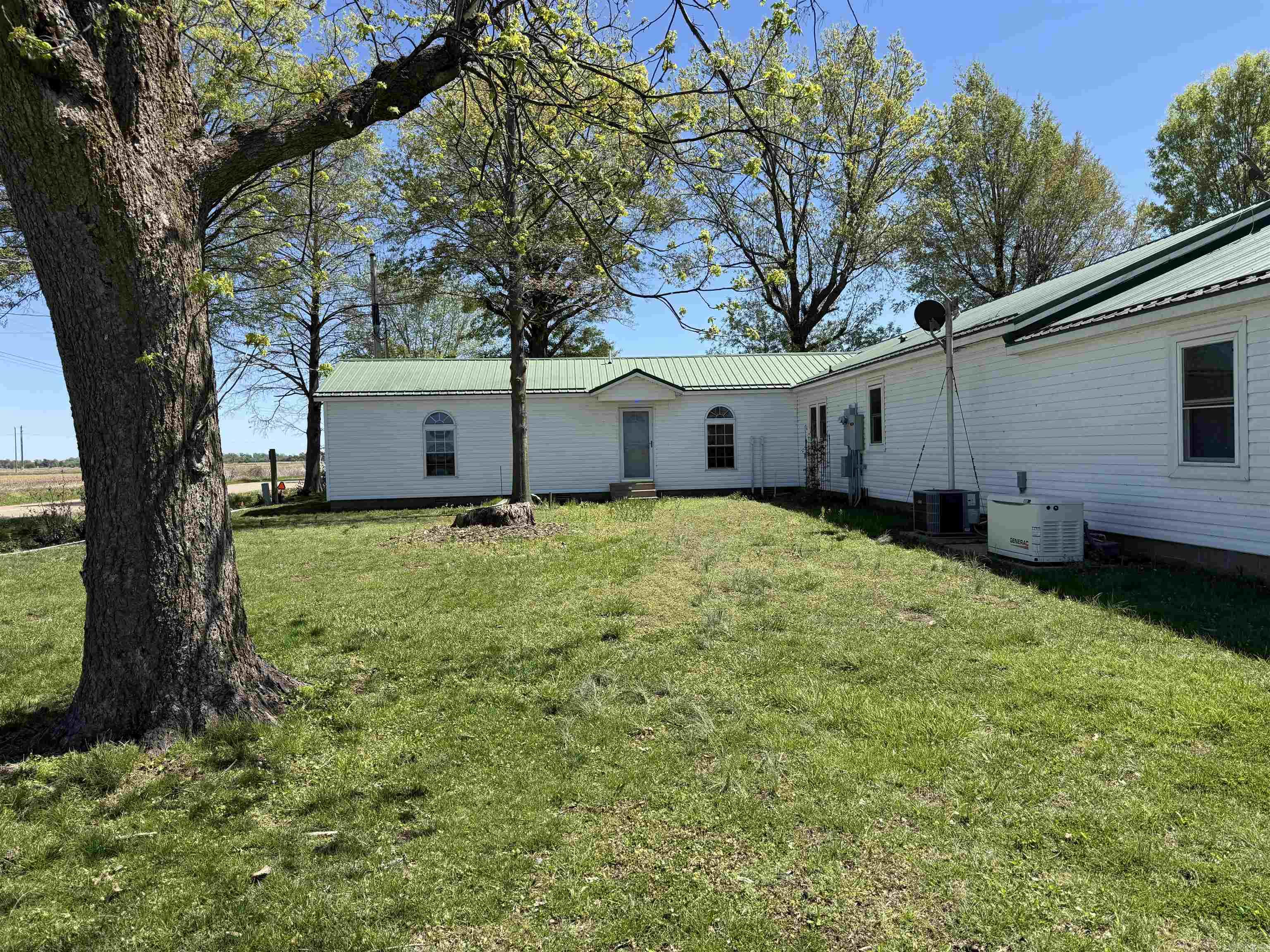 Rural farmhouse with two living quarters. It has 4 bedrooms and 3 baths. The main part of the home has a beautiful sunroom with a mini split perfect for year round enjoyment. There are three bedrooms (oak flooring under carpet) and two baths. It has a large den perfect for family gatherings. The kitchen is the heart of the home and has ample cooking and storage space. The other side of the home has its own entryway, covered parking, and fenced in side yard, kitchenette, Landry room, bedroom, bath, and living area. This set up is perfect for multi-generational living. This home also features a l100 x 40 shop with SHE SHED CANNING KITCHEN with stove, dishwasher, sink, large kitchen island, and is heated and cooled. It also has additional storage with shelving in the upstairs of the shop. Additional features include a Large Freight Container with electricity, chicken coop, 3 propane tanks, metal roof, 3 pecan trees, generator, hvac replaced 2025, hot water tank replaced 2025, detached garage and storage building. This property is surrounded by beautiful ,stately Oak Trees and enhance the beauty of this home. This HOME has so much to offer! Call today!