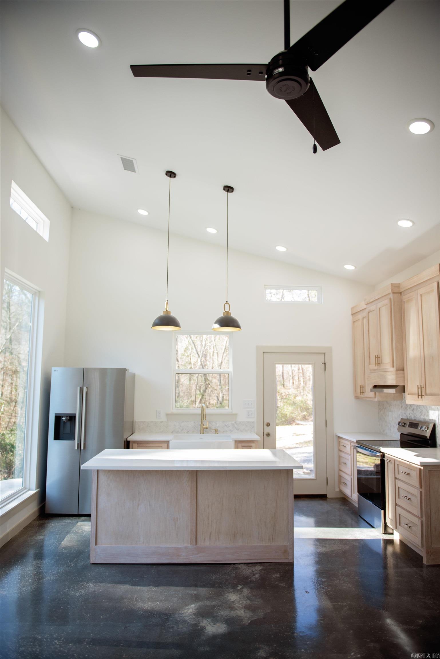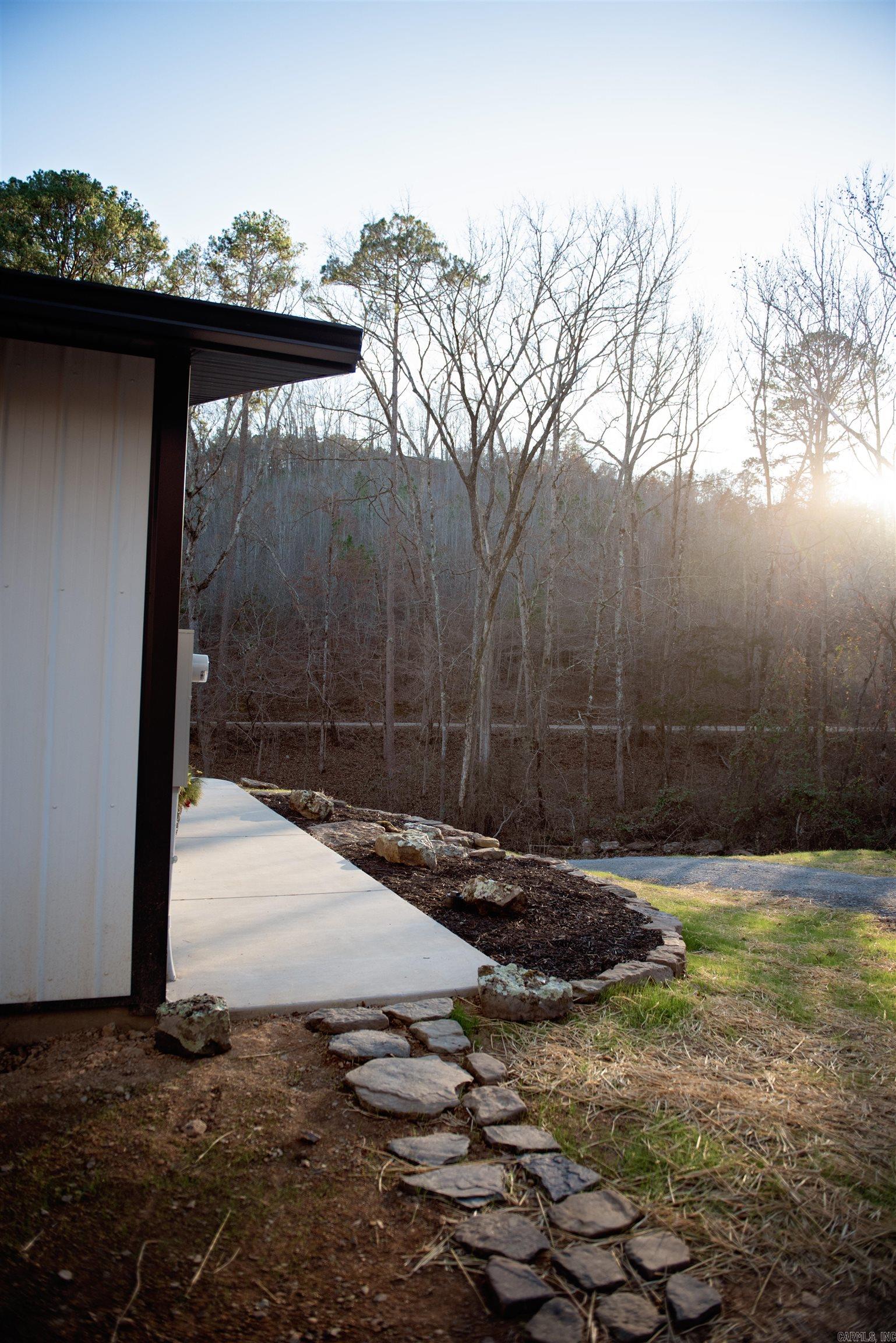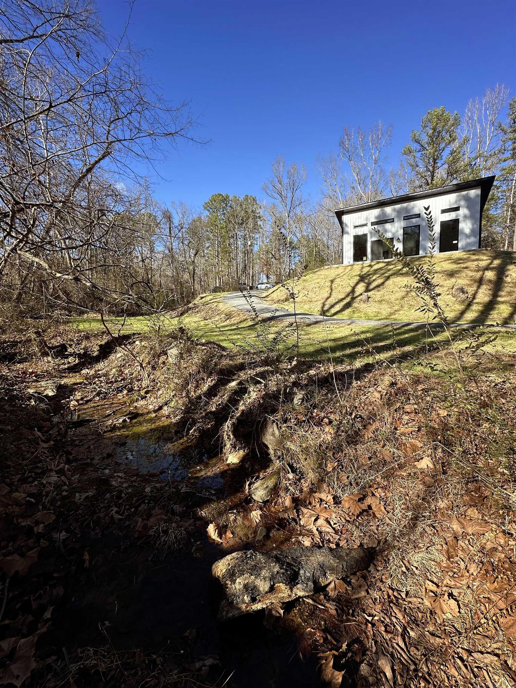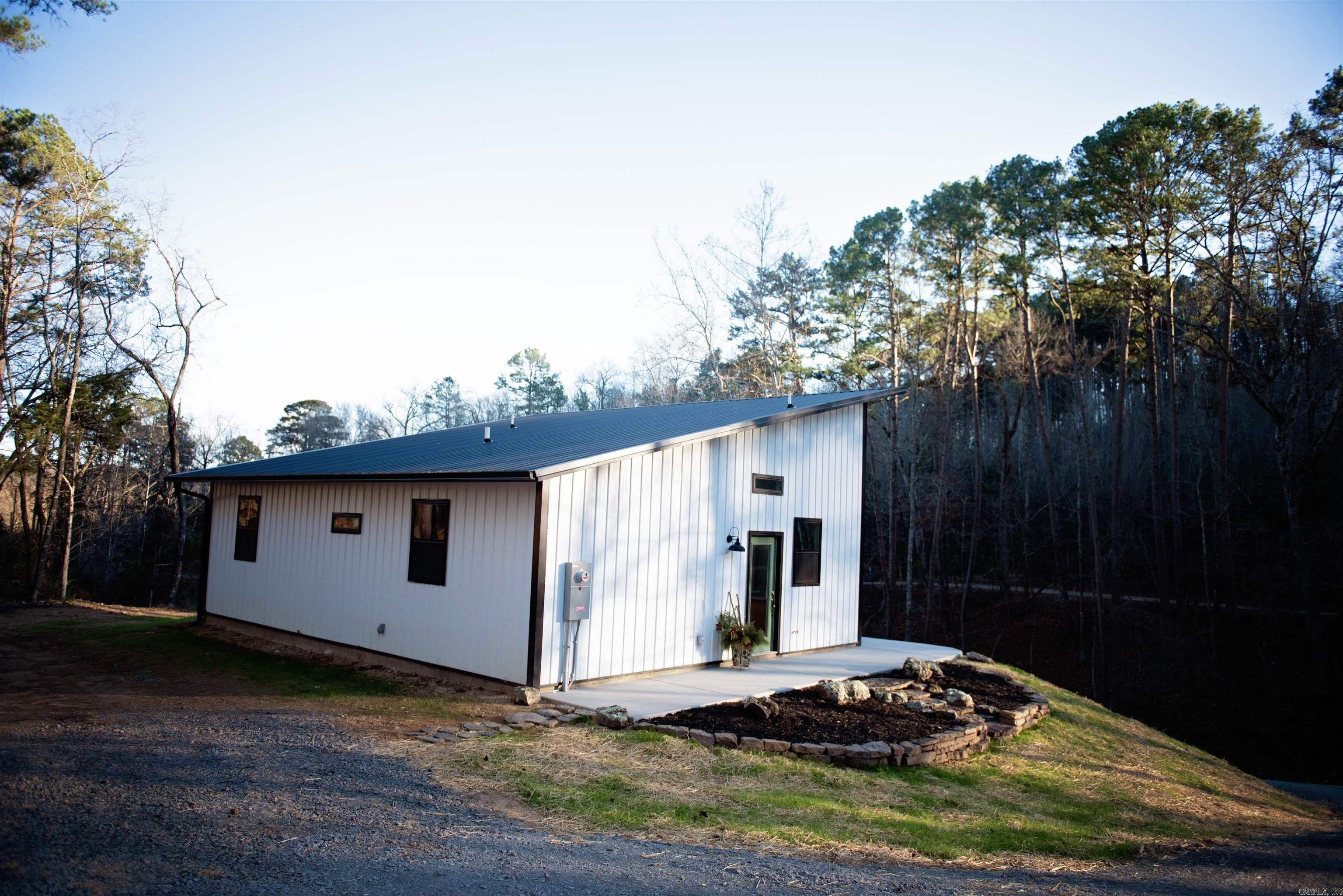 Welcome to this stunning modern retreat nestled in a peaceful, wooded setting. This home is walking distance of the Middle Fork of the Little Red River, with a tranquil natural branch flowing through the front of the property. This thoughtfully designed home features sleek vertical metal siding, a striking mono-pitch roofline, and clean architectural lines that blend beautifully with its natural surroundings. Inside, you’ll find a bright, open-concept living space with soaring ceilings, sealed concrete floors, and abundant natural light from oversized windows. The designer kitchen showcases custom wood cabinetry, a large center island, stainless steel appliances, and modern pendant lighting—perfect for entertaining or everyday living. Enjoy seamless indoor-outdoor living with easy access to the surrounding landscape, ideal for morning coffee, evening sunsets, and quiet weekends. Located just a short drive from Greers Ferry Lake, this home offers exceptional access to fishing, boating, and outdoor adventure. Whether you’re looking for a full-time residence, weekend getaway, or investment property, this unique home delivers modern comfort in a serene natural setting.