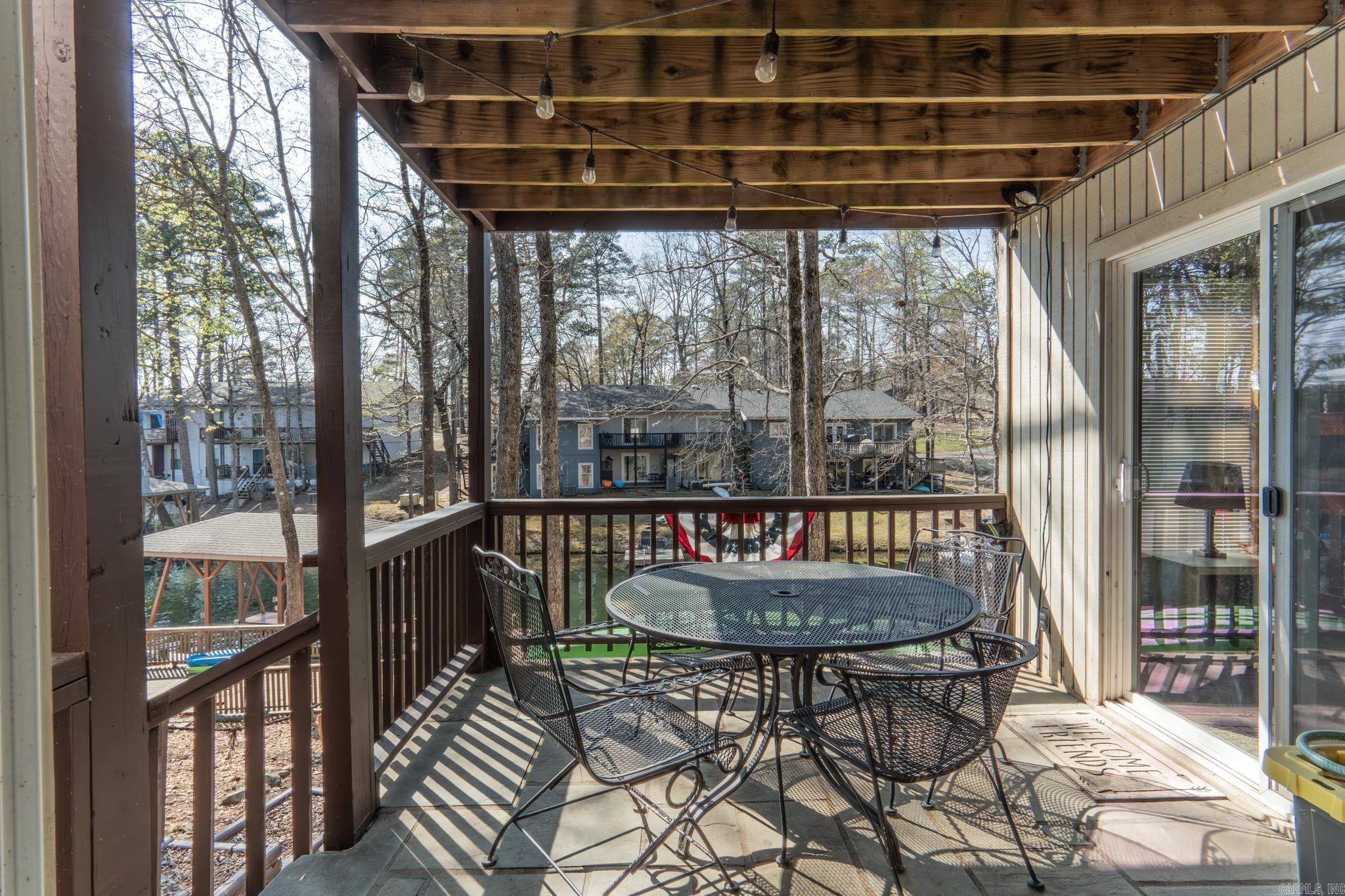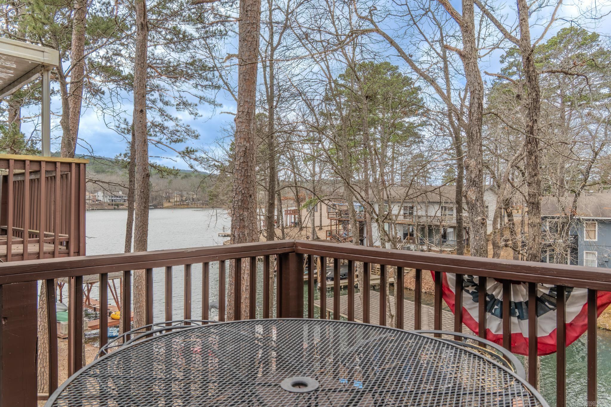 Wake up to stunning WATERFRONT views on beautiful Lake DeSoto! This fully furnished 3-bedroom END-UNIT offers the perfect mix of relaxation, recreation, and income potential with a proven successful short-term rental history. Enjoy incredible sunsets from your private back deck or lower patio, or walk down to your own boat/swim dock and head straight onto the lake. The sale even includes two kayaks with all the gear, making it a truly turnkey lake getaway. Inside you'll find an updated kitchen with granite countertops and new appliances, perfect for entertaining after a day on the water. New LVP flooring and carpet. The main-level also includes the primary bedroom with deck access and a full bath, while the lower level offers two additional bedrooms and full bath—ideal for family or guests. An oversized laundry/storage/owner’s room provides space for personal belongings. The home is fully equipped for vacation rentals, including extra linens, dishes, silverware, cookware, and everything needed for guests, allowing income from day one. Hot Springs Village has a $2000 new owner buy-in fee.